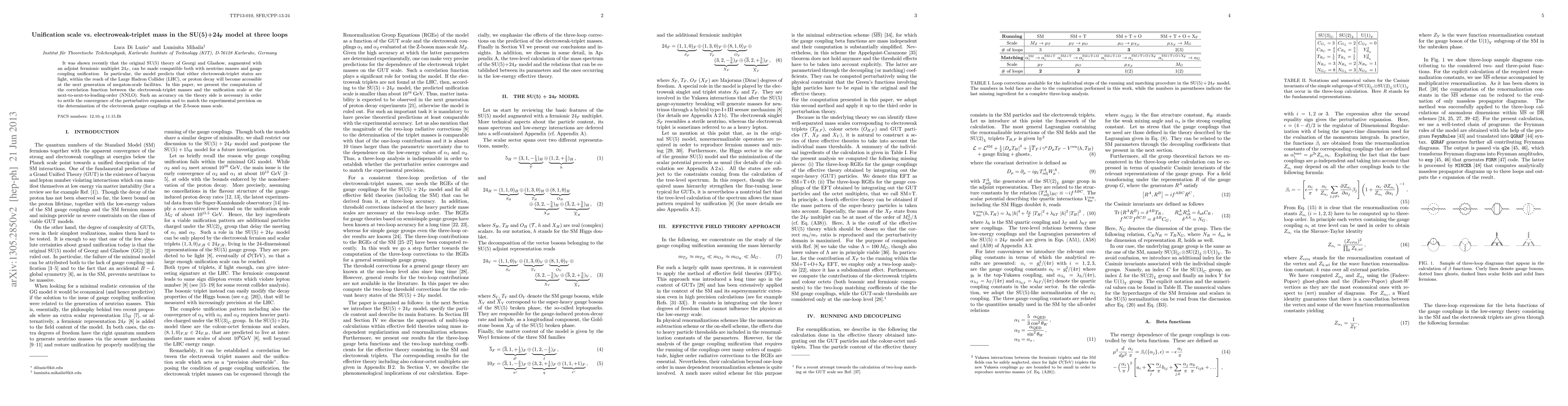 This paper computes the correlation between electroweak-triplet masses and the unification scale in the SU(5) + 24_F model at three-loop order, aiming to determine whether these states are within LHC reach or if proton decay will be detectable in future experiments. The NNLO accuracy is crucial for assessing the convergence of the perturbative expansion and matching experimental precision in gauge coupling unification.