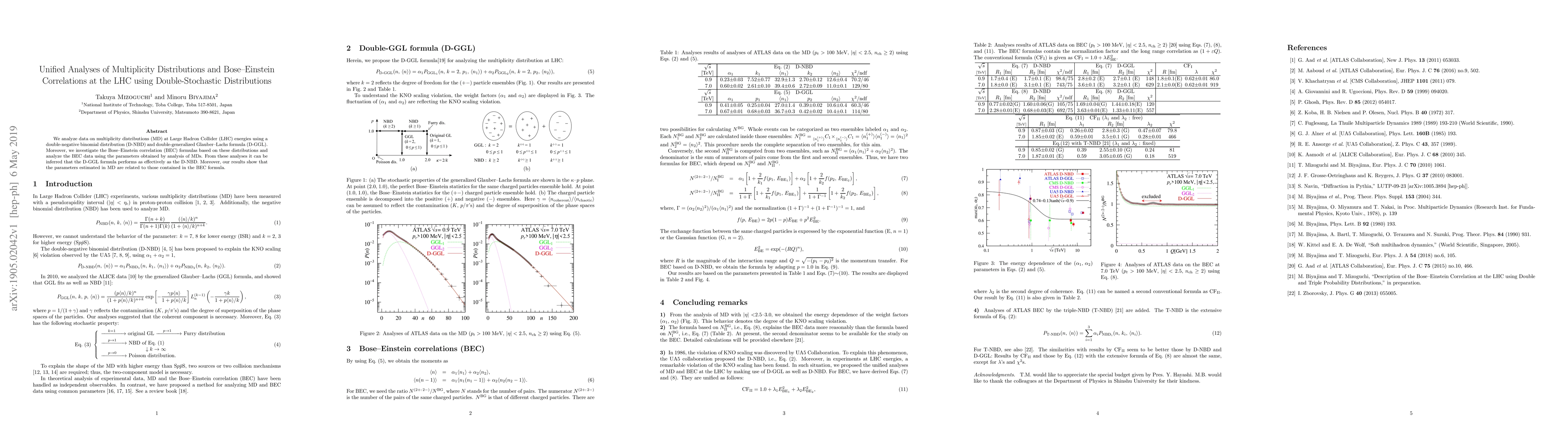 This paper analyzes LHC data on multiplicity distributions using a double-negative binomial distribution and a double-generalized Glauber-Lachs formula, finding both methods effective. It also investigates Bose-Einstein correlations, showing a relationship between parameters from multiplicity distributions and those in the correlation formulas.