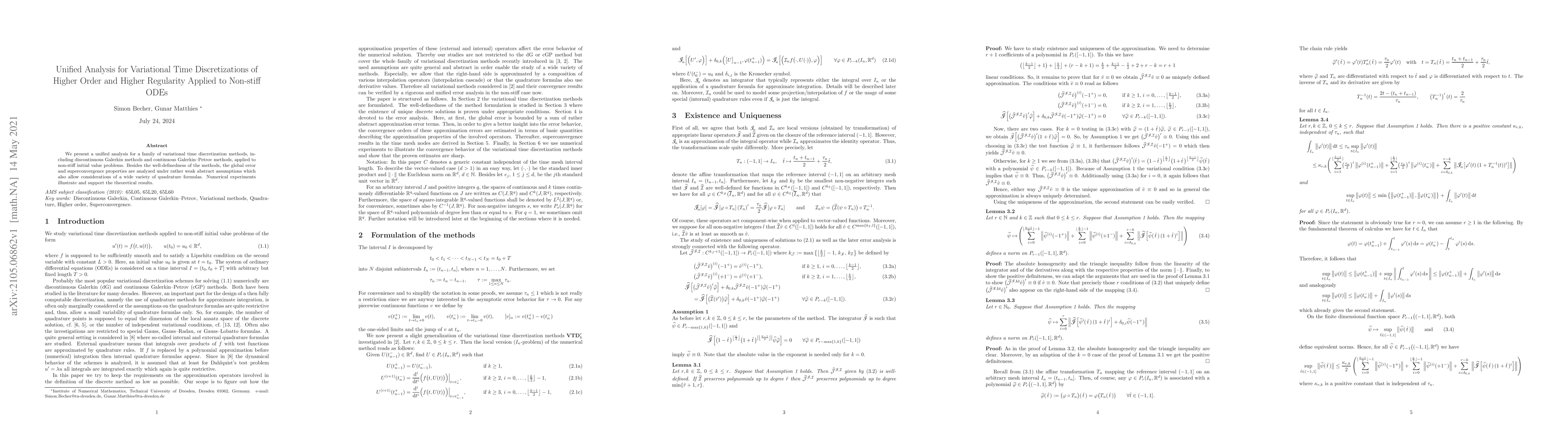We present a unified analysis for a family of variational time discretization methods, including discontinuous Galerkin methods and continuous Galerkin-Petrov methods, applied to non-stiff initial value problems. Besides the well-definedness of the methods, the global error and superconvergence properties are analyzed under rather weak abstract assumptions which also allow considerations of a wide variety of quadrature formulas. Numerical experiments illustrate and support the theoretical results.