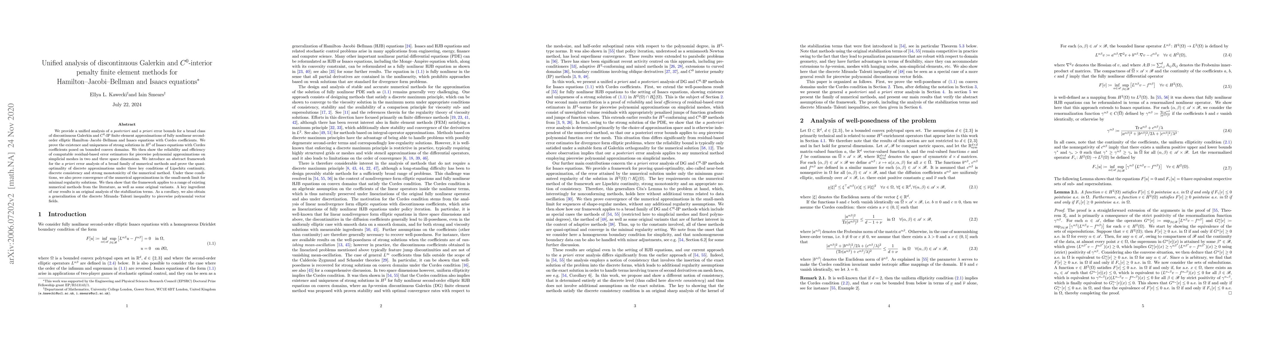 This paper provides a unified analysis of discontinuous Galerkin and $C^0$-interior penalty finite element methods for solving Hamilton-Jacobi-Bellman and Isaacs equations, proving existence and uniqueness of strong solutions, and establishing a priori error bounds and convergence under specified conditions. It also introduces a framework for analyzing various numerical methods and proves the quasi-optimality of discrete approximations.