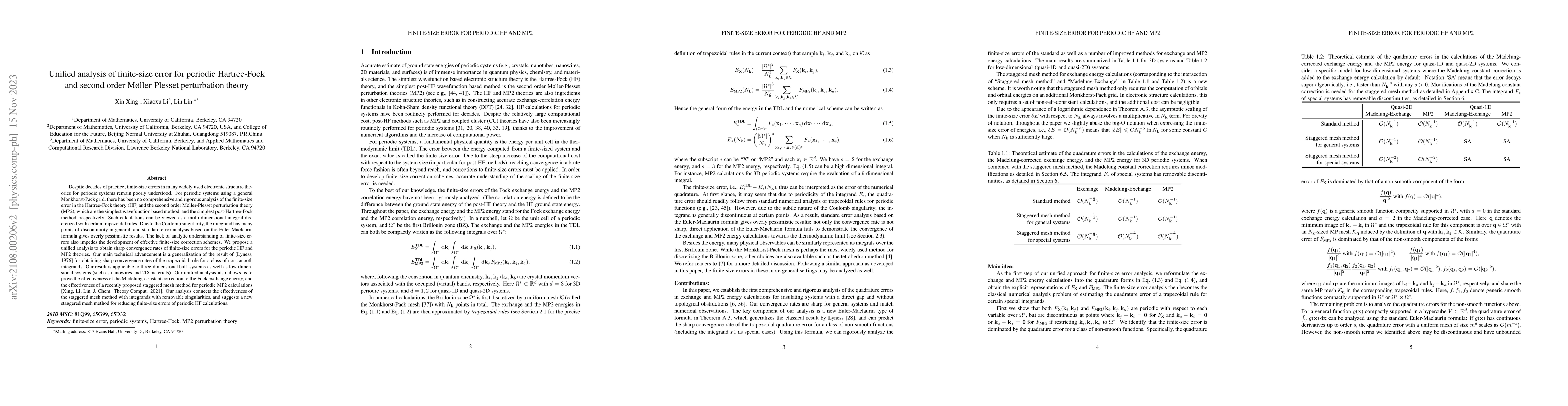 This paper provides a unified analysis of finite-size errors in periodic Hartree-Fock (HF) and second-order M{\o}ller-Plesset perturbation theory (MP2) for electronic structure calculations. The authors propose sharp convergence rates for these methods, generalizing previous results to handle non-smooth integrands, and demonstrate the effectiveness of correction schemes for finite-size errors.