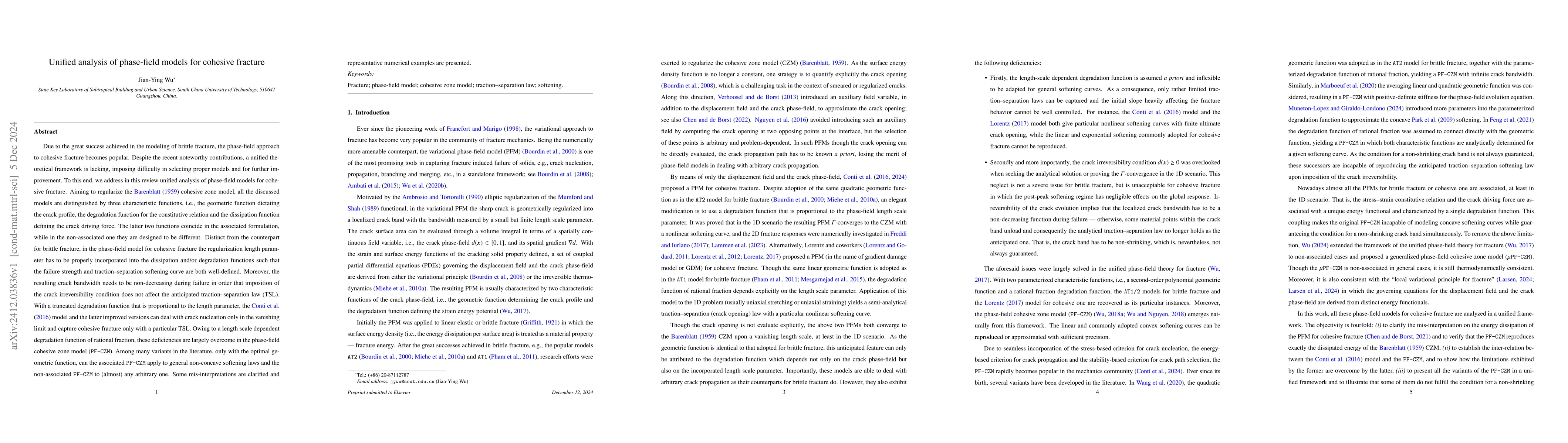 This work contributes to the unified framework of phase-field theory for fracture, offering a comprehensive analysis of existing models and identifying their strengths and limitations, which is crucial for accurate simulation of cohesive fracture in engineering applications.