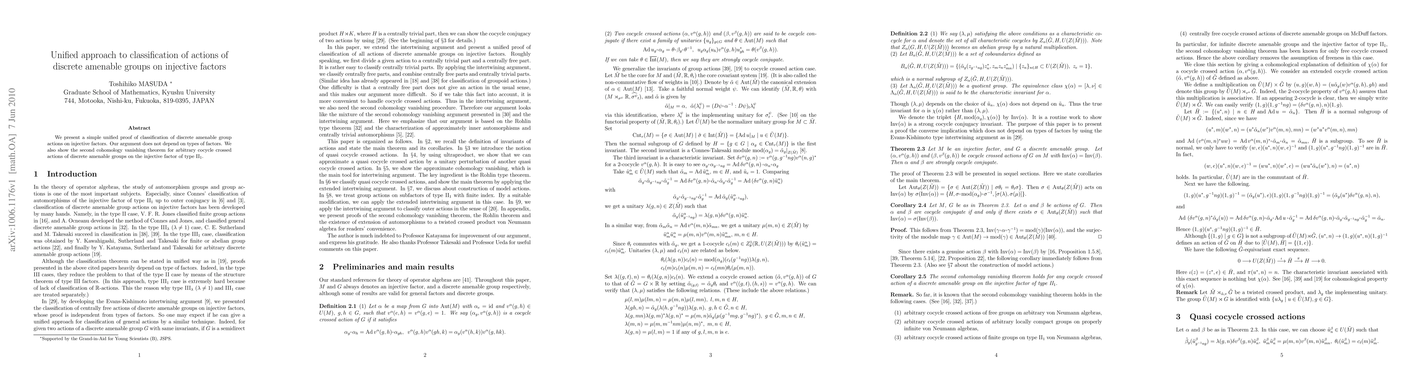 Summary: This paper provides a unified proof for classifying actions of discrete amenable groups on injective factors, independent of the type of factor, and establishes the second cohomology vanishing theorem for cocycle crossed actions on type II$_1$ injective factors.