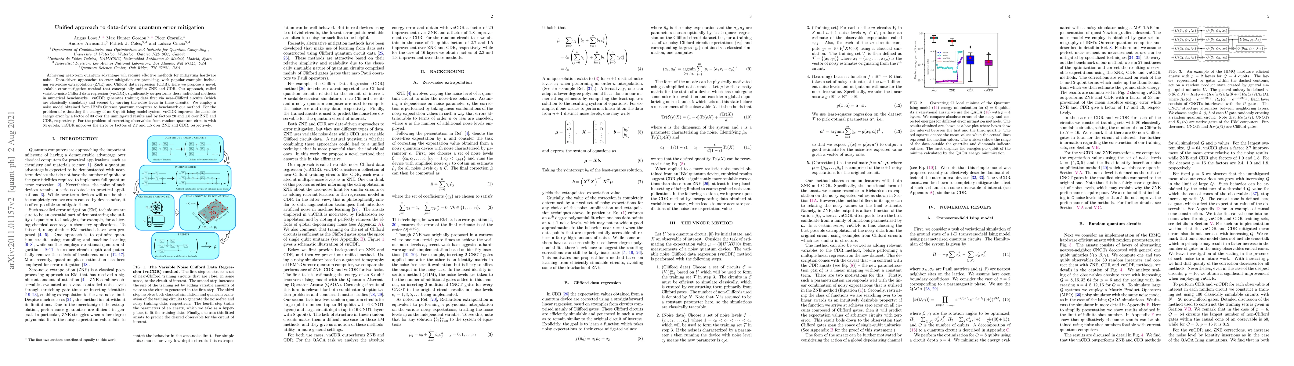This paper proposes a unified, scalable quantum error mitigation method called variable-noise Clifford data regression (vnCDR), which outperforms zero-noise extrapolation (ZNE) and Clifford data regression (CDR). Benchmarked on IBM's Ourense quantum computer, vnCDR significantly reduces error rates in estimating the energy of an 8-qubit Ising model and correcting observables from random quantum circuits.