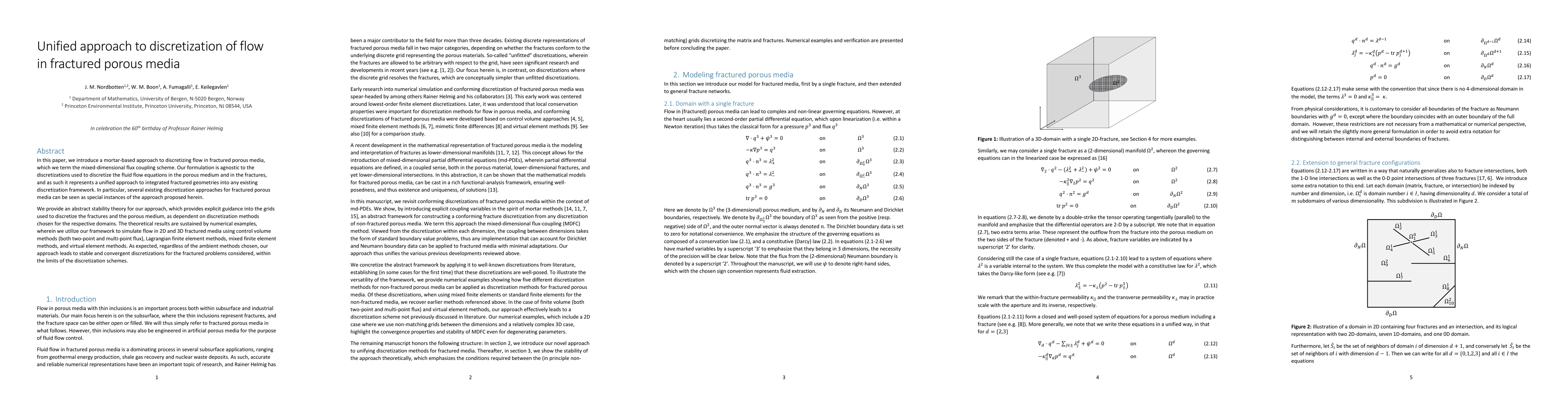 This paper proposes a mortar-based mixed-dimensional flux coupling scheme for discretizing flow in fractured porous media, offering a unified approach that integrates fractured geometries into various existing discretization frameworks. The authors provide an abstract stability theory and demonstrate its effectiveness through numerical simulations using different discretization methods.