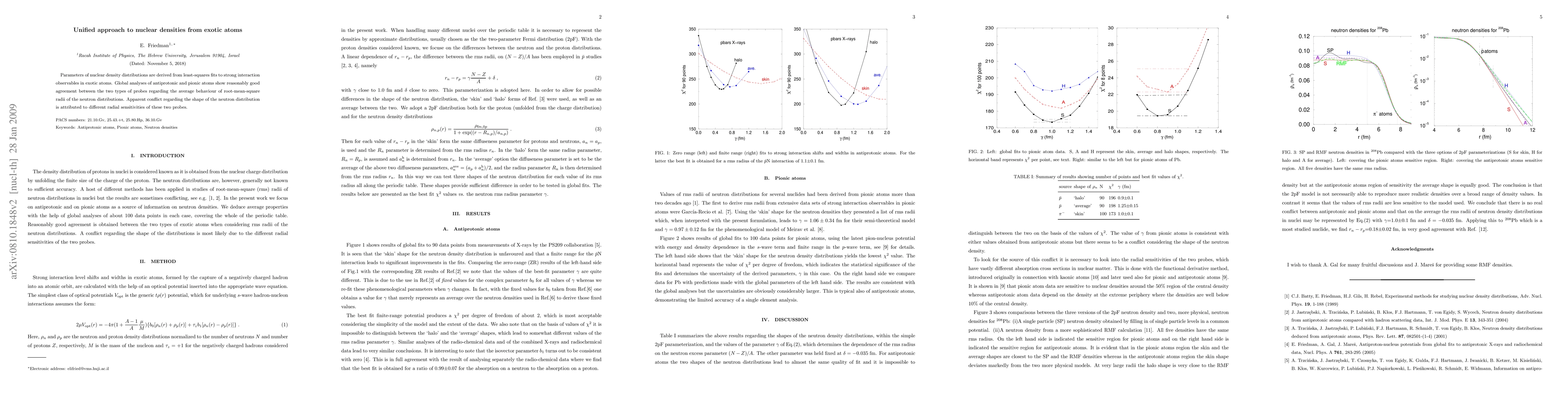 This paper presents a unified method for determining nuclear density parameters using exotic atoms, finding good agreement between antiprotonic and pionic atoms for neutron root-mean-square radii, while attributing discrepancies in distribution shape to differing radial sensitivities of the probes.