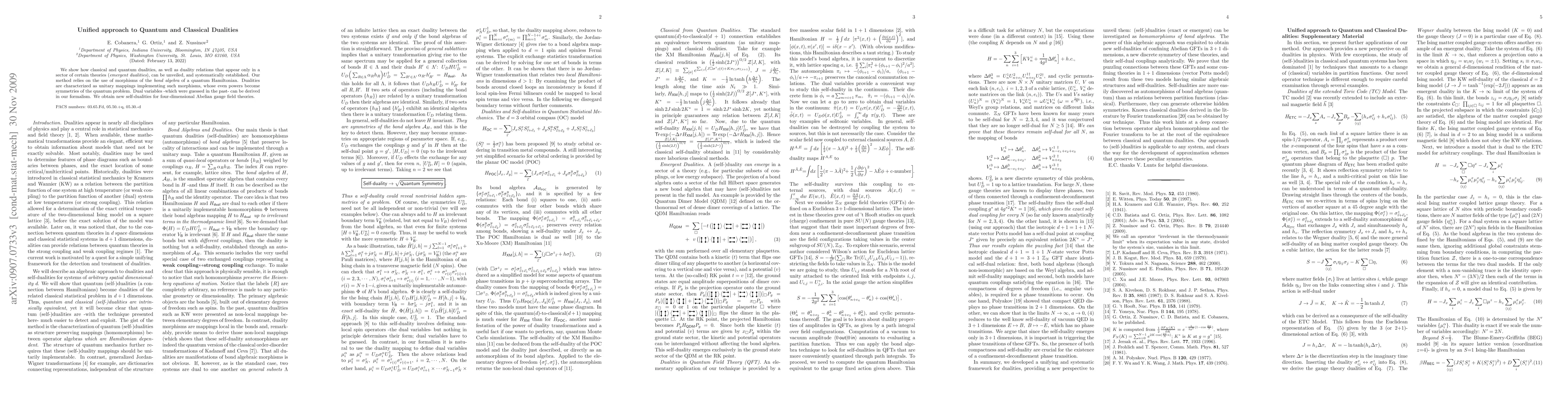 This paper presents a unified method for revealing and establishing classical and quantum dualities, including emergent dualities, using morphisms of the bond algebra of a quantum Hamiltonian. The method characterizes dualities as unitary mappings and derives dual variables, leading to new self-dualities in four-dimensional Abelian gauge field theories.