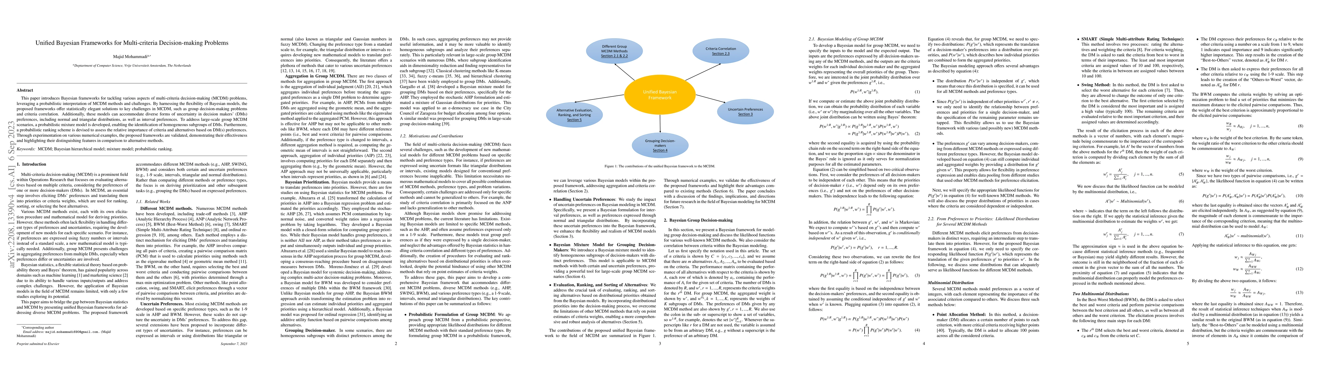 The proposed frameworks offer a novel approach to tackling complex MCDM problems, leveraging Bayesian models and probabilistic interpretations.