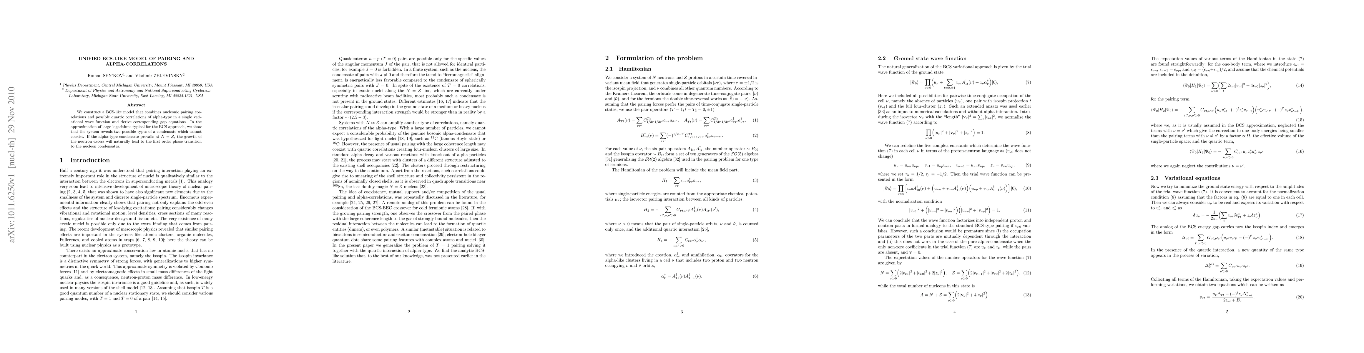 A new model combines nucleonic pairing correlations with alpha-type quartic correlations, revealing two possible condensate types that cannot coexist, leading to a phase transition under certain conditions.