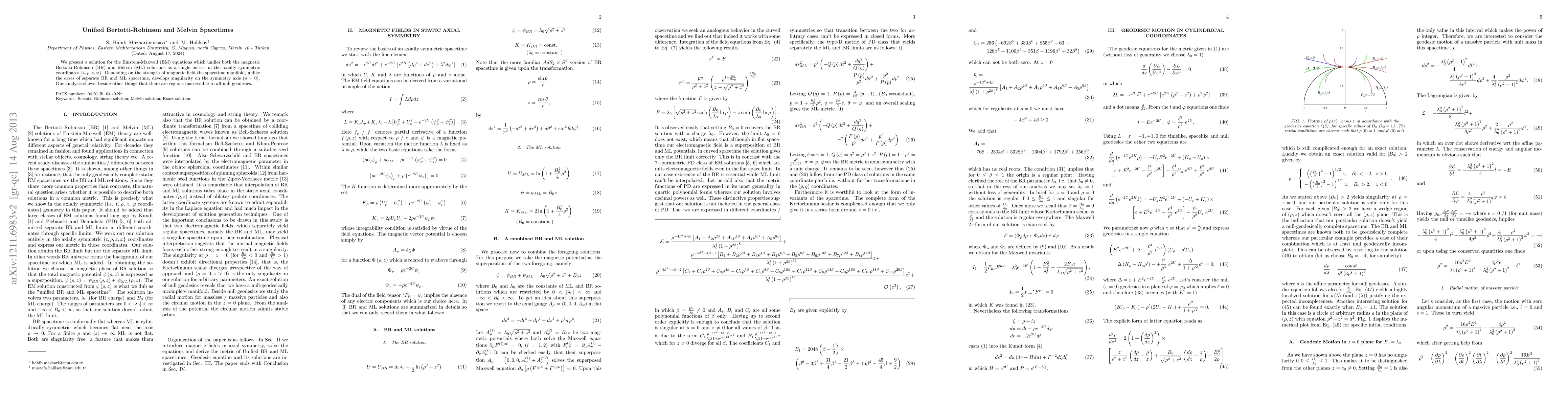 We present a solution for the Einstein-Maxwell (EM) equations which unifies both the magnetic Bertotti-Robinson (BR) and Melvin (ML) solutions as a single metric in the axially symmetric coordinates ${t,\rho,z,\varphi} $. Depending on the strength of magnetic field the spacetime manifold, unlike the cases of separate BR and ML spacetime, develops singularity on the symmetry axis ($\rho =0$). Our analysis shows, beside other things that there are regions inaccessible to all null geodesics.