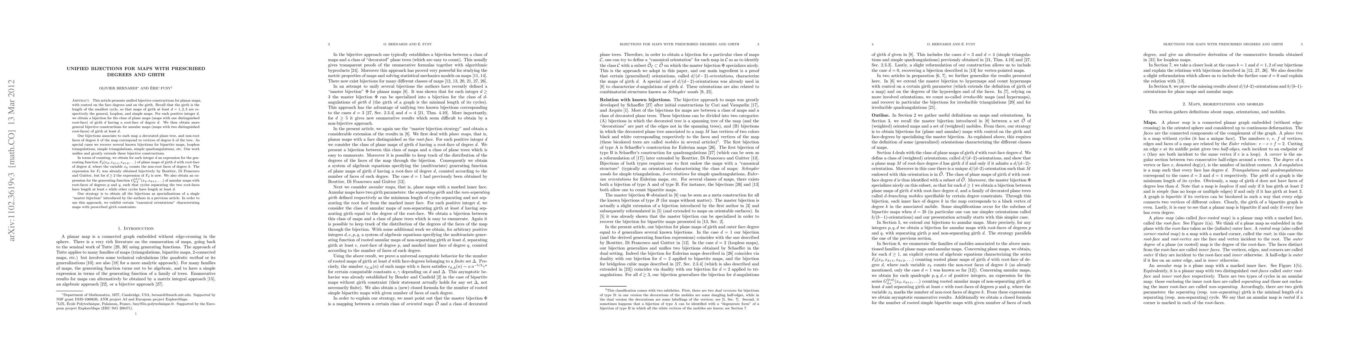 This article presents unified bijective constructions for planar maps, with control on the face degrees and on the girth. Recall that the girth is the length of the smallest cycle, so that maps of girth at least $d=1,2,3$ are respectively the general, loopless, and simple maps. For each positive integer $d$, we obtain a bijection for the class of plane maps (maps with one distinguished root-face) of girth $d$ having a root-face of degree $d$. We then obtain more general bijective constructions for annular maps (maps with two distinguished root-faces) of girth at least $d$. Our bijections associate to each map a decorated plane tree, and non-root faces of degree $k$ of the map correspond to vertices of degree $k$ of the tree. As special cases we recover several known bijections for bipartite maps, loopless triangulations, simple triangulations, simple quadrangulations, etc. Our work unifies and greatly extends these bijective constructions. In terms of counting, we obtain for each integer $d$ an expression for the generating function $F_d(x_d,x_{d+1},x_{d+2},...)$ of plane maps of girth $d$ with root-face of degree $d$, where the variable $x_k$ counts the non-root faces of degree $k$. The expression for $F_1$ was already obtained bijectively by Bouttier, Di Francesco and Guitter, but for $d\geq 2$ the expression of $F_d$ is new. We also obtain an expression for the generating function $\G_{p,q}^{(d,e)}(x_d,x_{d+1},...)$ of annular maps with root-faces of degrees $p$ and $q$, such that cycles separating the two root-faces have length at least $e$ while other cycles have length at least $d$. Our strategy is to obtain all the bijections as specializations of a single "master bijection" introduced by the authors in a previous article. In order to use this approach, we exhibit certain "canonical orientations" characterizing maps with prescribed girth constraints.