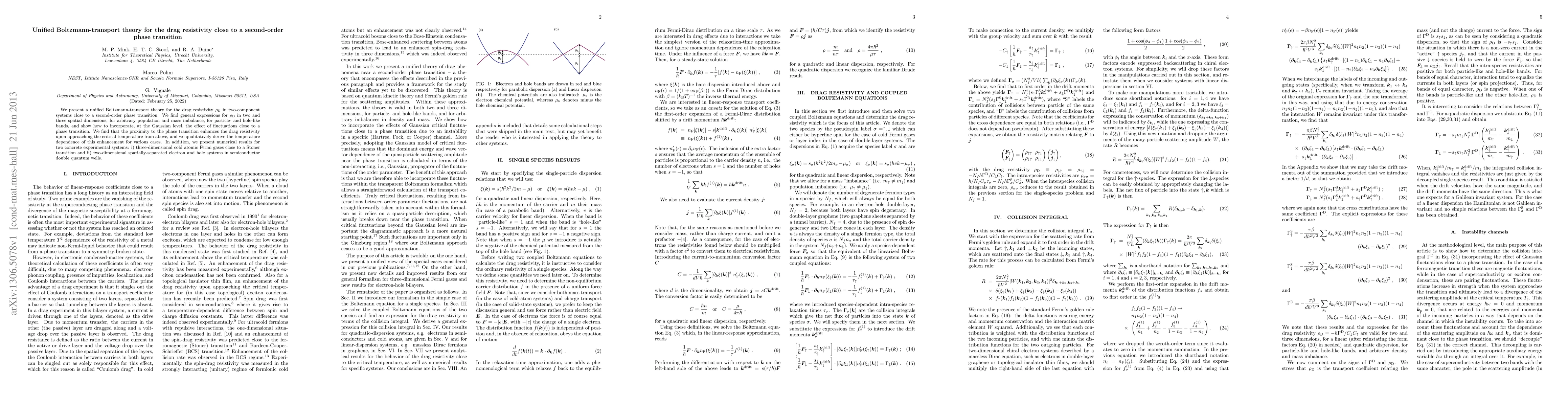 This paper develops a unified Boltzmann-transport theory for drag resistivity in systems near a second-order phase transition, providing general expressions for various dimensions and conditions. It shows that proximity to the phase transition enhances drag resistivity, with qualitative temperature dependence derived for different scenarios, and applies the theory to cold atomic Fermi gases and semiconductor quantum wells.