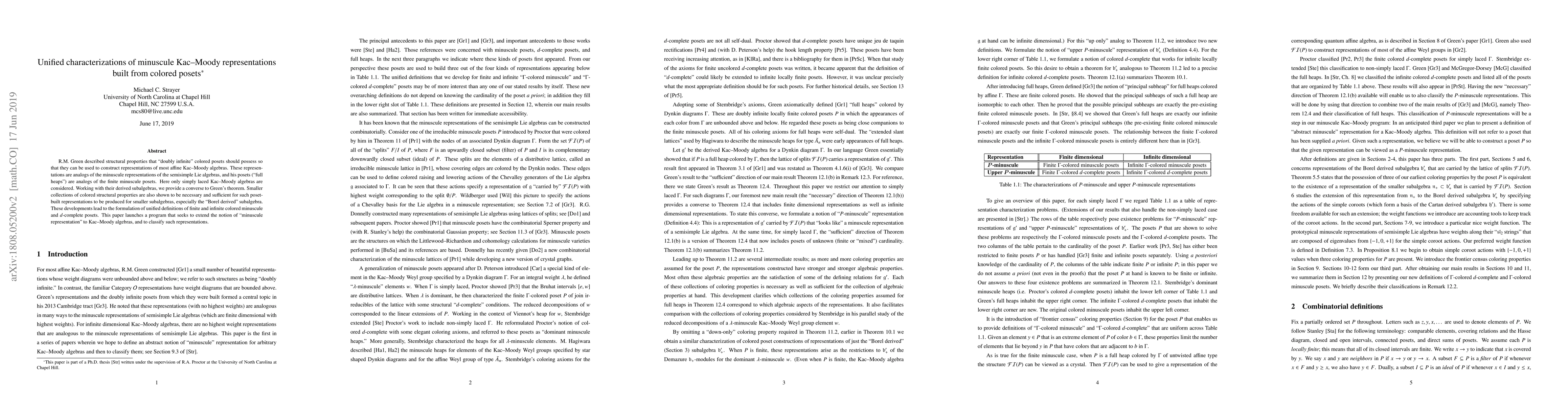 This paper explores the construction of representations of affine Kac-Moody algebras using colored posets, providing a converse to Green's theorem and unified definitions for colored minuscule and $d$-complete posets. It aims to extend the concept of "minuscule representation" to Kac-Moody algebras and classify such representations.