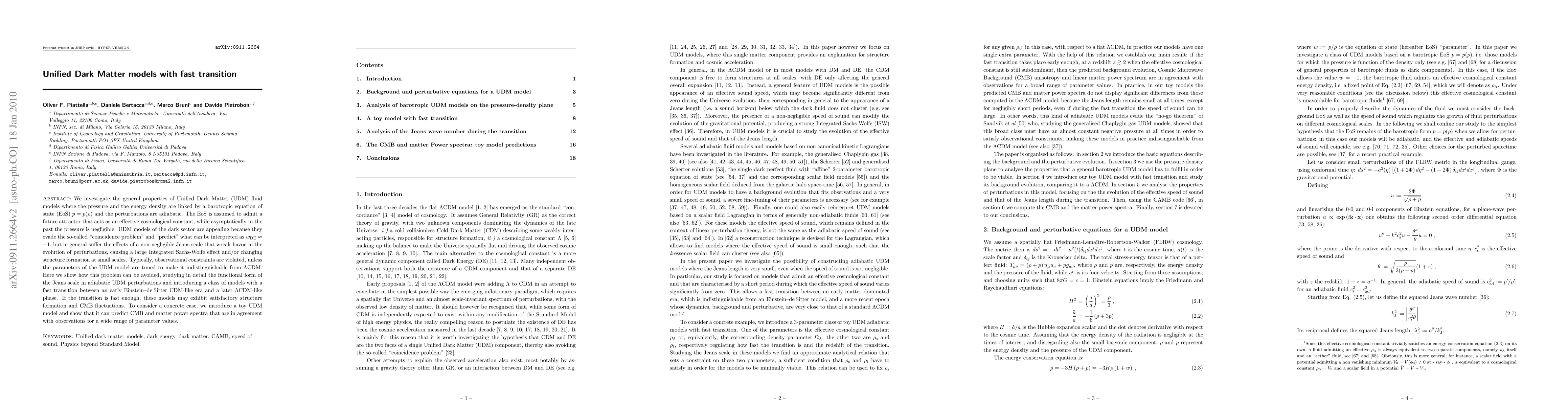 We investigate the general properties of Unified Dark Matter (UDM) fluid models where the pressure and the energy density are linked by a barotropic equation of state (EoS) $p = p(\rho)$ and the perturbations are adiabatic. The EoS is assumed to admit a future attractor that acts as an effective cosmological constant, while asymptotically in the past the pressure is negligible. UDM models of the dark sector are appealing because they evade the so-called "coincidence problem" and "predict" what can be interpreted as $w_{\rm DE} \approx -1$, but in general suffer the effects of a non-negligible Jeans scale that wreak havoc in the evolution of perturbations, causing a large Integrated Sachs-Wolfe effect and/or changing structure formation at small scales. Typically, observational constraints are violated, unless the parameters of the UDM model are tuned to make it indistinguishable from $\Lambda$CDM. Here we show how this problem can be avoided, studying in detail the functional form of the Jeans scale in adiabatic UDM perturbations and introducing a class of models with a fast transition between an early Einstein-de Sitter CDM-like era and a later $\Lambda$CDM-like phase. If the transition is fast enough, these models may exhibit satisfactory structure formation and CMB fluctuations. To consider a concrete case, we introduce a toy UDM model and show that it can predict CMB and matter power spectra that are in agreement with observations for a wide range of parameter values.