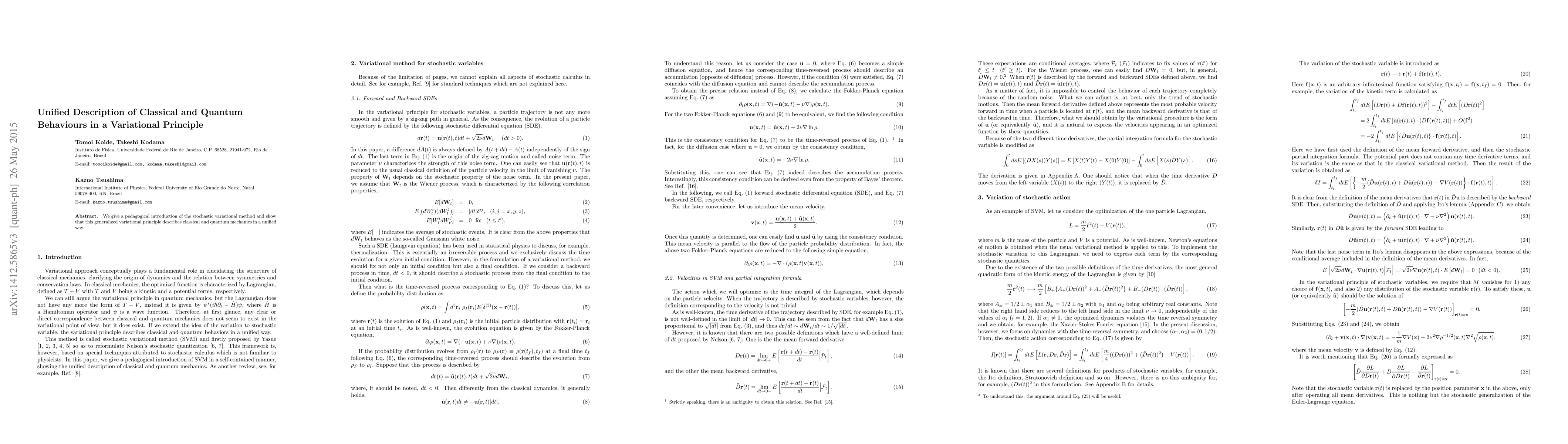 Summary: This paper introduces the stochastic variational method, demonstrating its ability to unify classical and quantum mechanics under a single generalized variational principle. The method provides a coherent framework for understanding both classical and quantum behaviors.