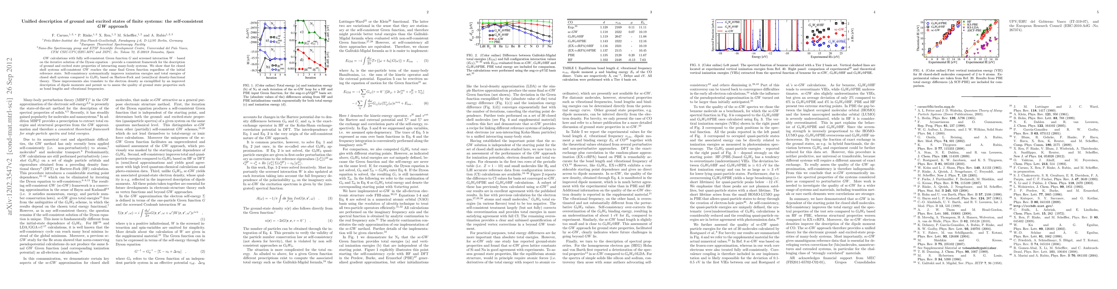 This paper presents a self-consistent GW approach that consistently describes both ground and excited states of finite systems. Self-consistency improves ionization energies, total energies, and electron density, leading to better assessments of properties like bond lengths and vibrational frequencies.