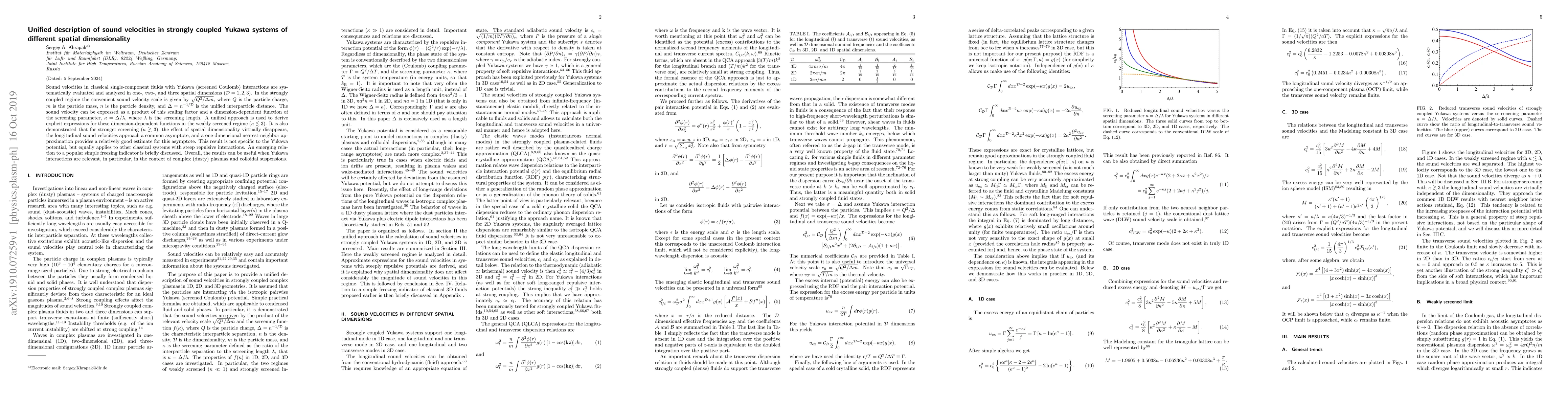 This paper systematically evaluates sound velocities in strongly coupled Yukawa systems across different spatial dimensions, deriving explicit expressions for dimension-dependent functions in weakly screened regimes. It finds that for stronger screening, sound velocities converge regardless of dimensionality, useful for understanding complex plasmas and colloidal suspensions.