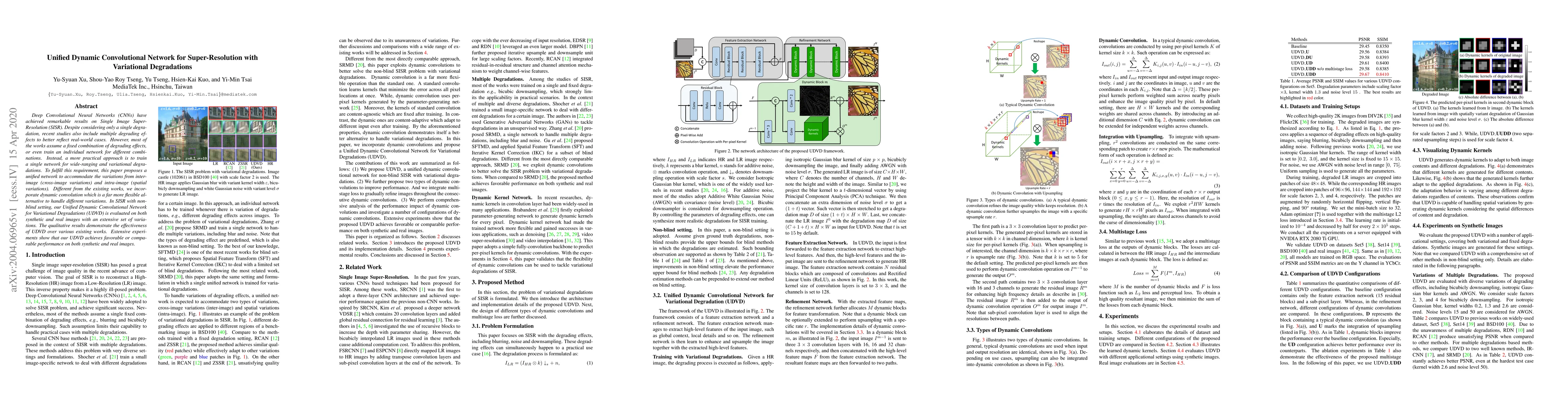 This paper proposes a Unified Dynamic Convolutional Network (UDVD) for Single Image Super-Resolution (SISR) that handles various inter-image and intra-image degradations dynamically. Unlike previous methods, UDVD uses dynamic convolution to flexibly adapt to different degradation variations, achieving competitive performance on both synthetic and real images.