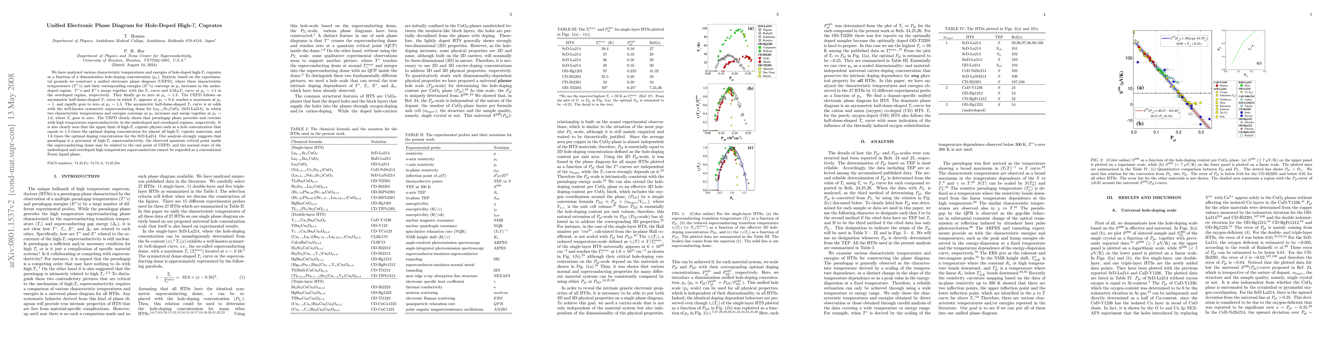 This research constructs a unified electronic phase diagram (UEPD) for hole-doped high-Tc cuprates, revealing that pseudogap phase precedes high-temperature superconductivity and that the UEPD's asymmetric half-dome shape contrasts with conventional superconducting domes. The study identifies a pseudogap-superconductivity coexistence and an upper limit of high-Tc cuprate physics at a hole concentration of 1.3 times the optimal doping.