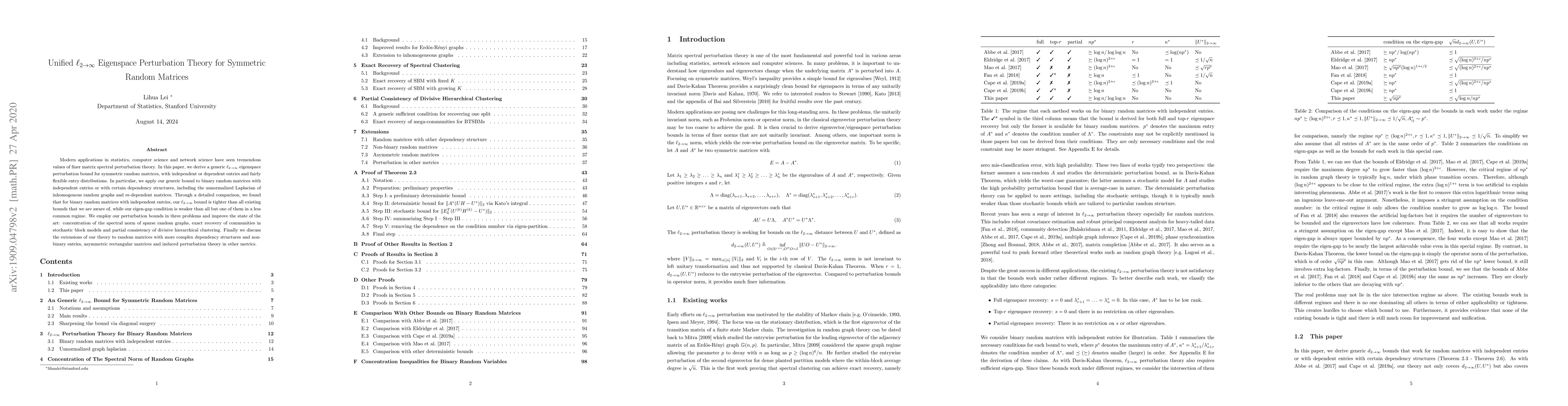 This paper develops a novel $\ell_{2\rightarrow\infty}$ eigenspace perturbation theory for symmetric random matrices, providing tighter bounds for binary matrices and improving results in community detection, spectral norm concentration, and hierarchical clustering. The theory also extends to more complex matrix structures and dependency patterns.