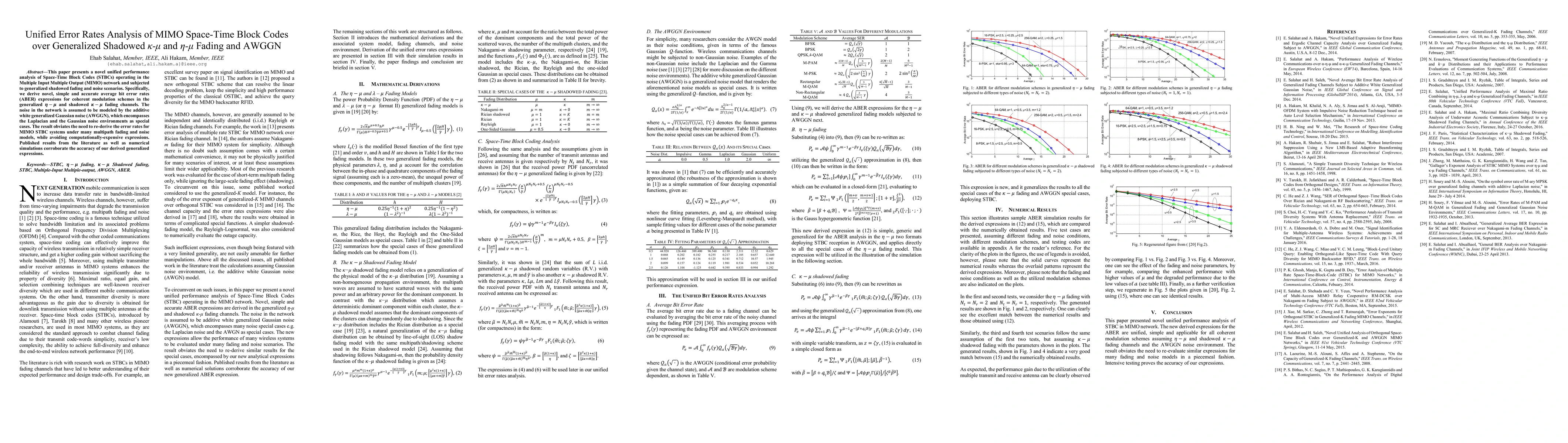 This paper presents a unified analysis of Space-Time Block Codes in MIMO networks with generalized shadowed fading and AWGGN noise, providing accurate ABER expressions that simplify rederivation of error rates.