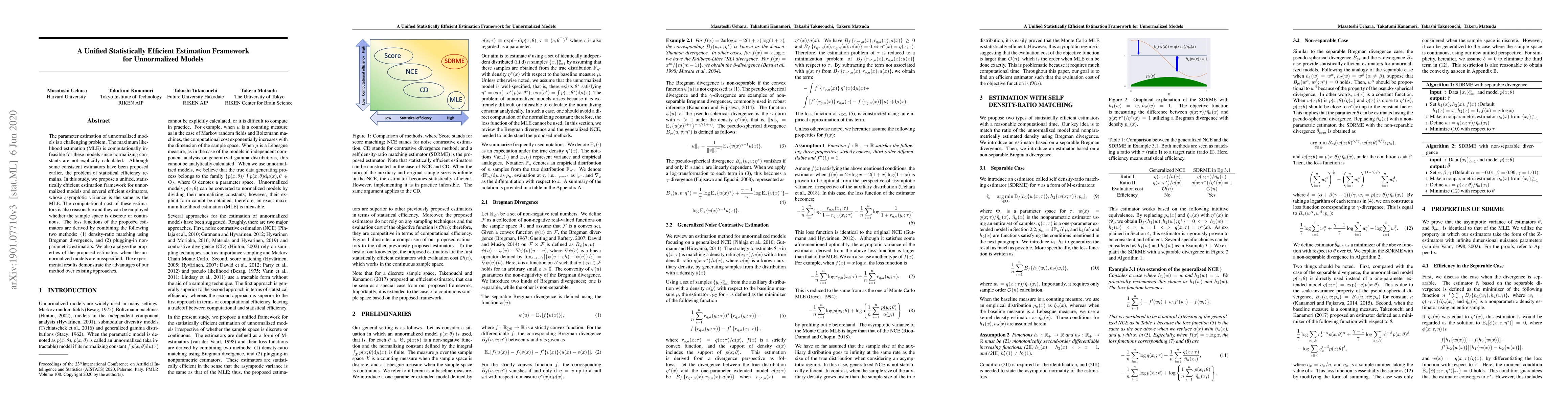 This paper proposes a unified estimation framework for unnormalized models that achieves statistical efficiency comparable to maximum likelihood estimation (MLE). The method combines density-ratio matching and nonparametric estimators to provide consistent and computationally feasible estimators for both discrete and continuous sample spaces.