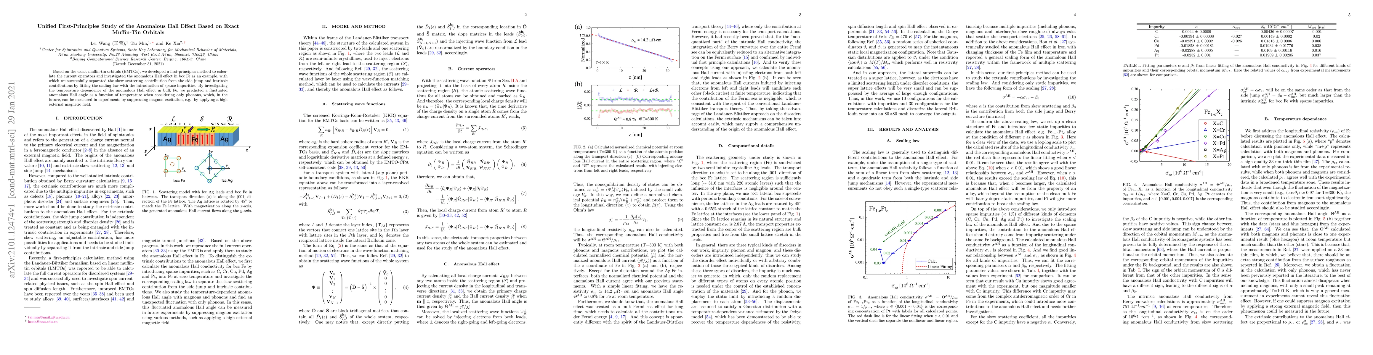 Based on the exact muffin-tin orbitals (EMTOs), we developed a first-principles method to calculate the current operators and investigated the anomalous Hall effect in bcc Fe as an example, with which we successfully separated the skew scattering contribution from the side jump and intrinsic contributions by fitting the scaling law with the introduction of sparse impurities. By investigating the temperature dependence of the anomalous Hall effect in bulk Fe, we predicted a fluctuated anomalous Hall angle as a function of temperature when considering only phonons, which, in the future, can be measured in experiments by suppressing magnon excitation, e.g., by applying a high external magnetic field.
