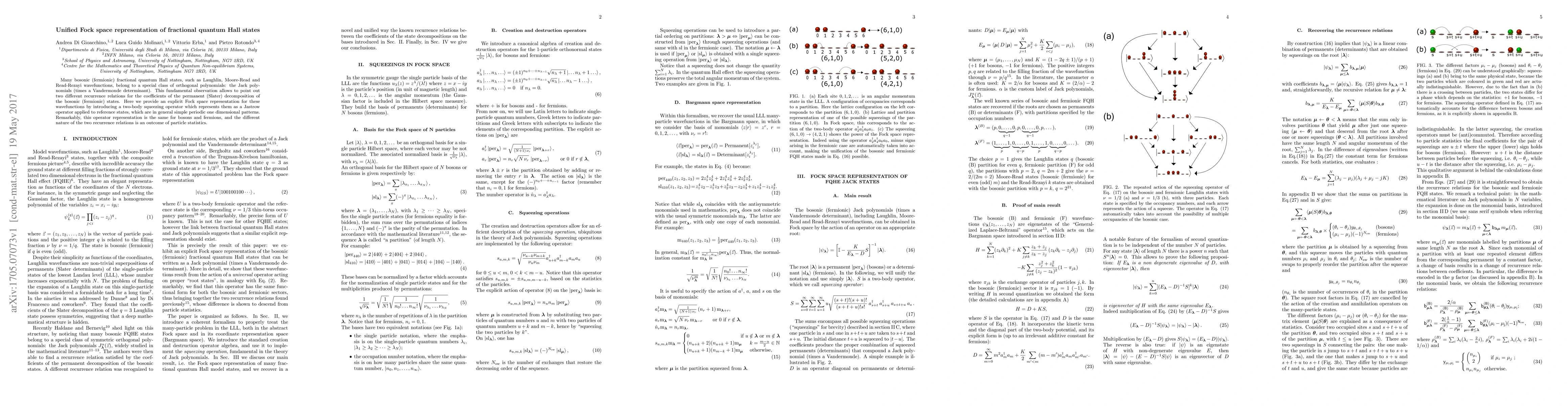 This paper presents a unified Fock space representation for various bosonic and fermionic fractional quantum Hall states using a two-body squeezing operator. It reveals that these states can be expressed as a Jastrow operator applied to simple reference states, with the same operator representation for both bosons and fermions, differing only in the recurrence relations due to particle statistics.