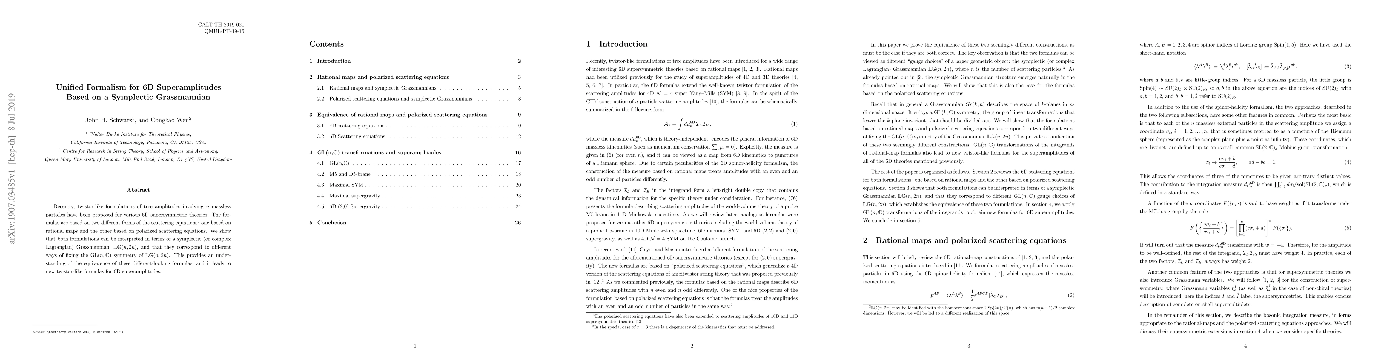 This paper demonstrates that two distinct formulations of 6D supersymmetric superamplitudes, based on rational maps and polarized scattering equations, can be unified through a symplectic Grassmannian $\mathbb{LG}(n, 2n)$, elucidating their underlying equivalence and yielding new twistor-like expressions for these amplitudes.