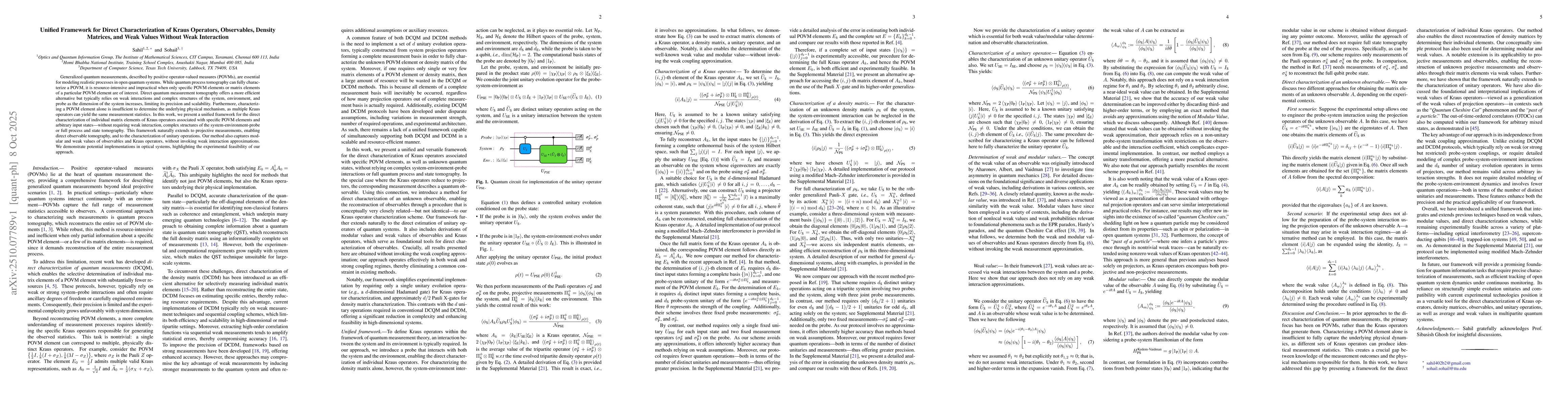 Generalized quantum measurements, described by positive operator-valued measures (POVMs), are essential for modeling realistic processes in open quantum systems. While quantum process tomography can fully characterize a POVM, it is resource-intensive and impractical when only specific POVM elements or matrix elements of a particular POVM element are of interest. Direct quantum measurement tomography offers a more efficient alternative but typically relies on weak interactions and complex structures of the system, environment, and probe as the dimension of the system increases, limiting its precision and scalability. Furthermore, characterizing a POVM element alone is insufficient to determine the underlying physical mechanism, as multiple Kraus operators can yield the same measurement statistics. In this work, we present a unified framework for the direct characterization of individual matrix elements of Kraus operators associated with specific POVM elements and arbitrary input states without requiring weak interaction, complex structures of the system-environment-probe or full process and state tomography. This framework naturally extends to projective measurements, enabling direct observable tomography, and to the characterization of unitary operations. Our method also captures modular and weak values of observables and Kraus operators, without invoking weak interaction approximations. We demonstrate potential implementations in optical systems, highlighting the experimental feasibility of our approach.