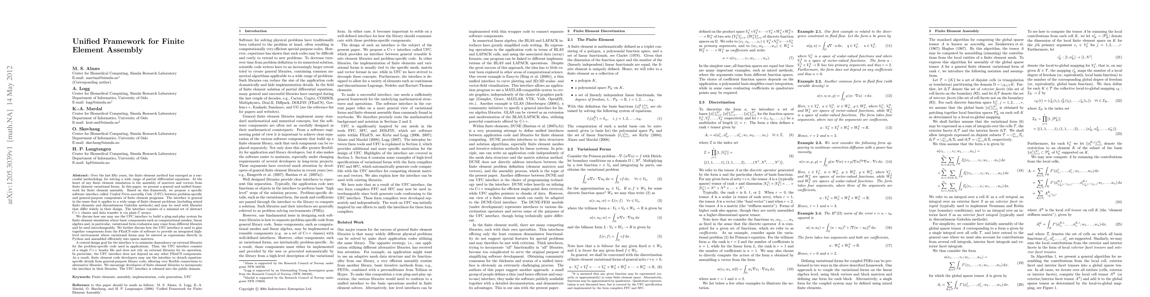 The paper proposes the Unified Form-assembly Code (UFC) interface, which provides a general framework for assembling matrices and vectors in finite element simulations, enabling problem-specific and general-purpose components to work together independently of mesh and linear algebra specifics. The UFC interface is applicable to a wide range of finite element methods and is released into the public domain without reliance on external libraries.