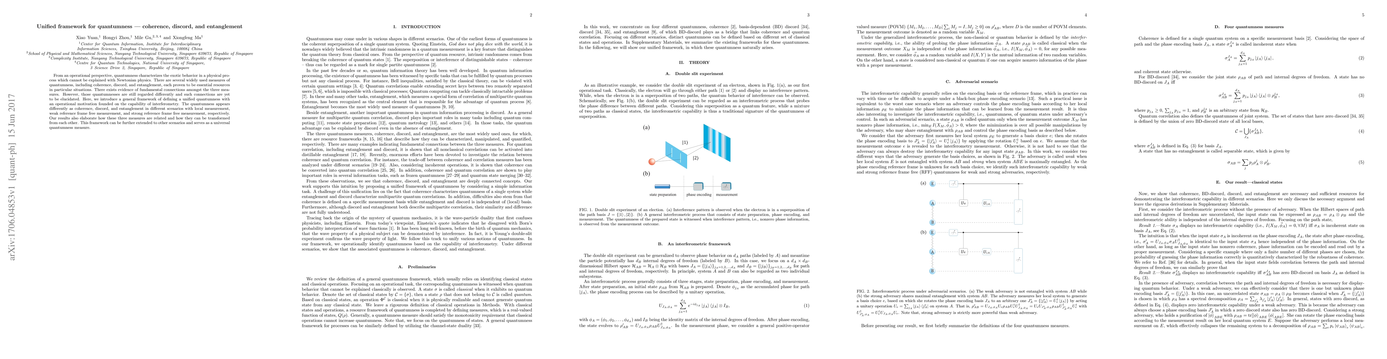 The research introduces a unified framework for quantumness, focusing on coherence, discord, and entanglement, operationalized through interferometry. It explores the relationships among these measures and their transformations under different measurement scenarios.