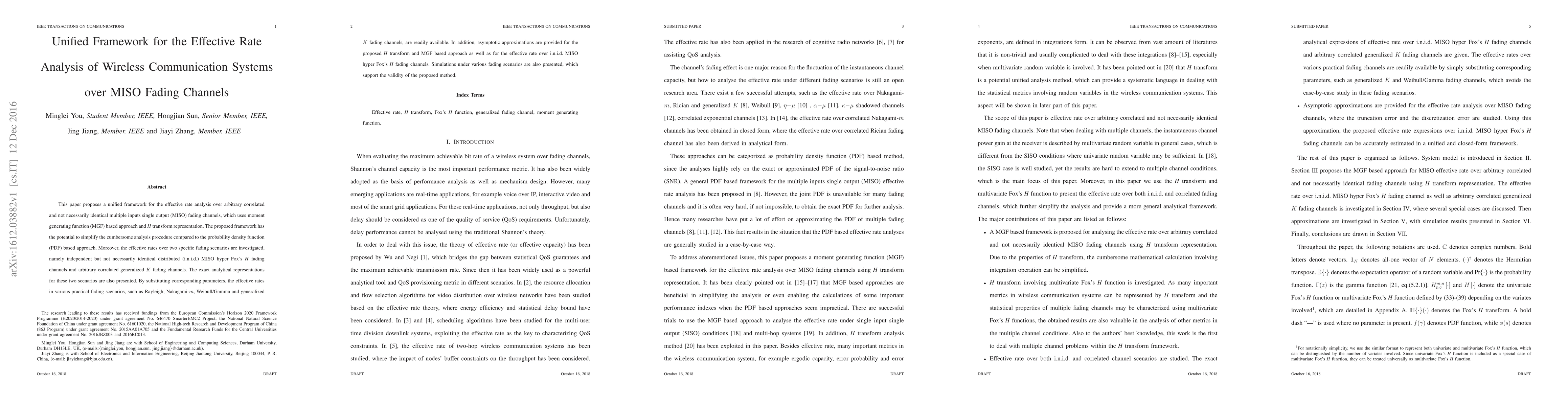 This paper introduces a unified framework for analyzing effective rates in MISO fading channels using MGF and H transform, simplifying the analysis compared to PDF methods. It provides exact analytical representations and asymptotic approximations for specific fading scenarios, supported by simulations.