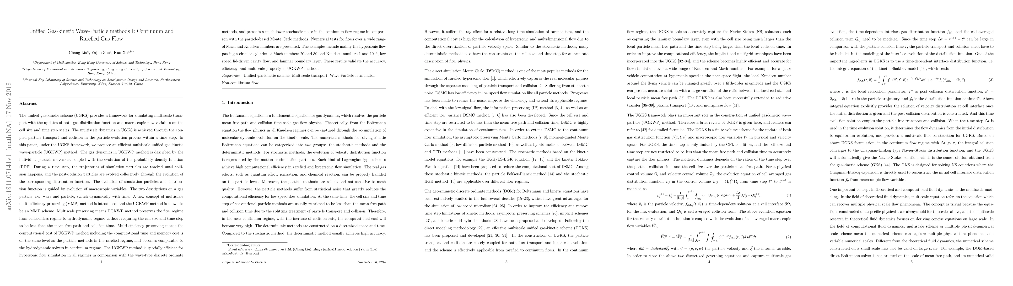 The paper introduces the unified gas-kinetic wave-particle (UGKWP) method within the unified gas-kinetic scheme (UGKS) framework, which efficiently simulates gas dynamics across continuum and rarefied regimes. The UGKWP method dynamically switches between particle and wave descriptions, offering enhanced efficiency and reduced stochastic noise compared to existing methods.