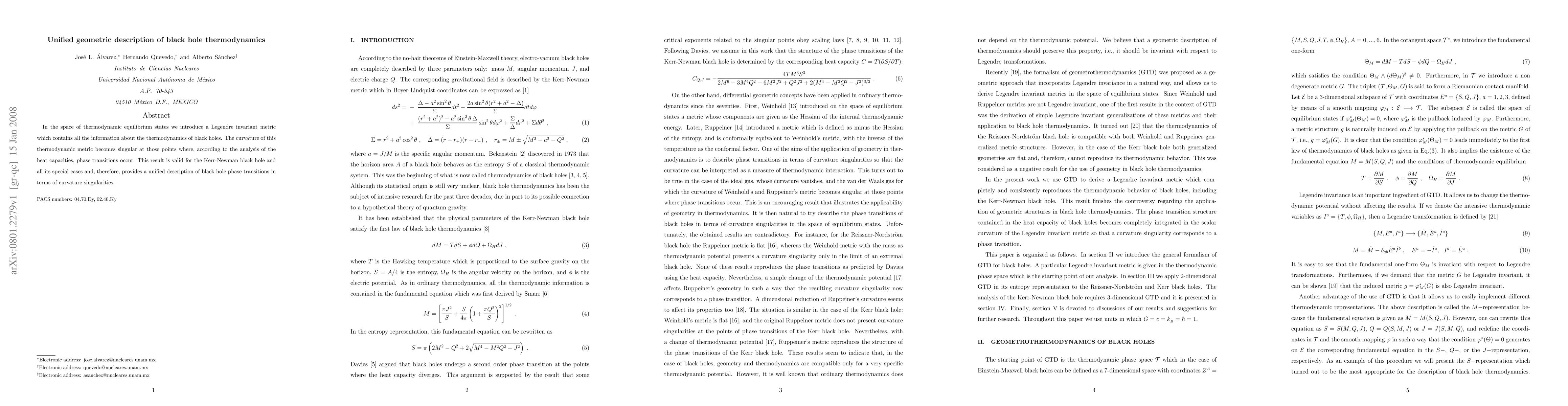 This paper introduces a Legendre invariant metric in thermodynamic equilibrium states to describe black hole thermodynamics, revealing curvature singularities at points of phase transitions for the Kerr-Newman black hole and its special cases, providing a unified geometric framework for black hole thermodynamics.