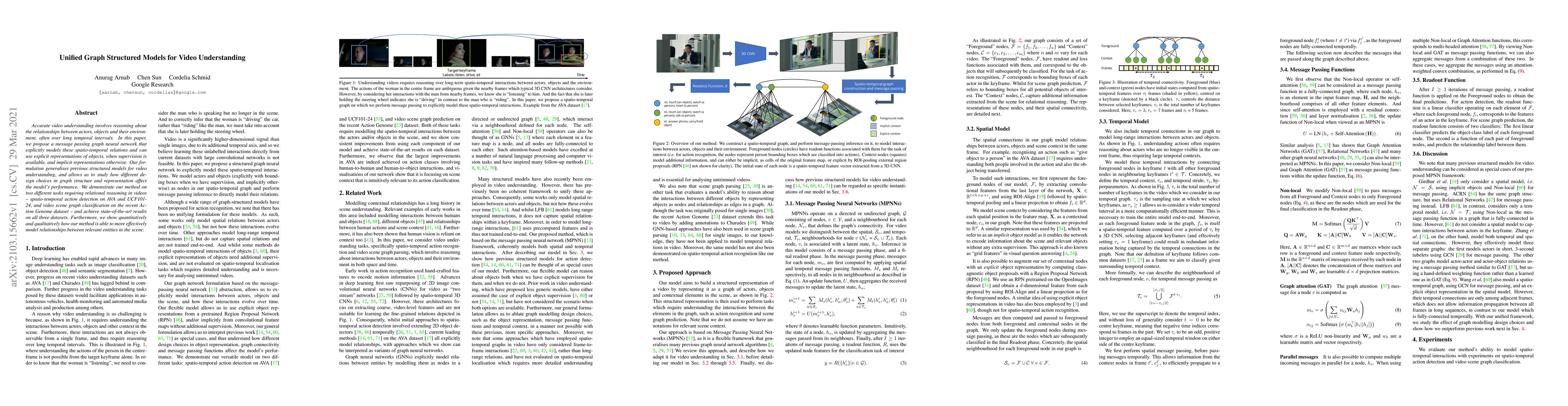 Accurate video understanding involves reasoning about the relationships between actors, objects and their environment, often over long temporal intervals. In this paper, we propose a message passing graph neural network that explicitly models these spatio-temporal relations and can use explicit representations of objects, when supervision is available, and implicit representations otherwise. Our formulation generalises previous structured models for video understanding, and allows us to study how different design choices in graph structure and representation affect the model's performance. We demonstrate our method on two different tasks requiring relational reasoning in videos -- spatio-temporal action detection on AVA and UCF101-24, and video scene graph classification on the recent Action Genome dataset -- and achieve state-of-the-art results on all three datasets. Furthermore, we show quantitatively and qualitatively how our method is able to more effectively model relationships between relevant entities in the scene.