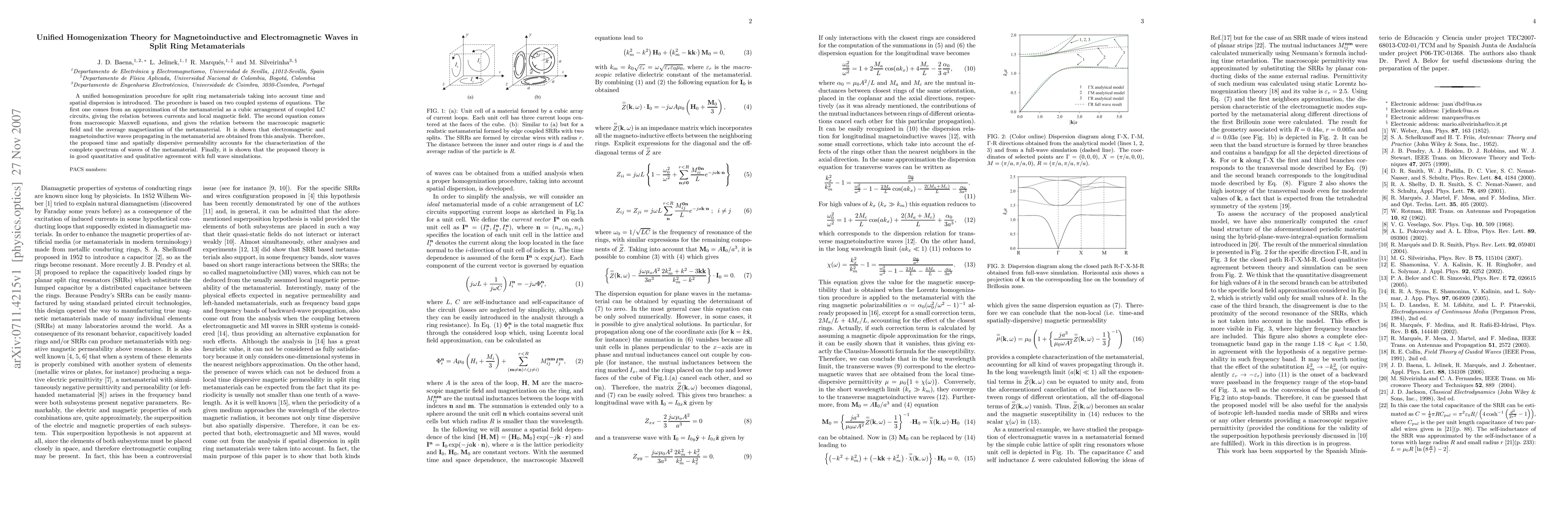 This paper introduces a unified homogenization theory for split ring metamaterials, accounting for time and spatial dispersion through two coupled systems of equations. The theory accurately characterizes electromagnetic and magnetoinductive waves in the metamaterial and aligns well with full wave simulations.