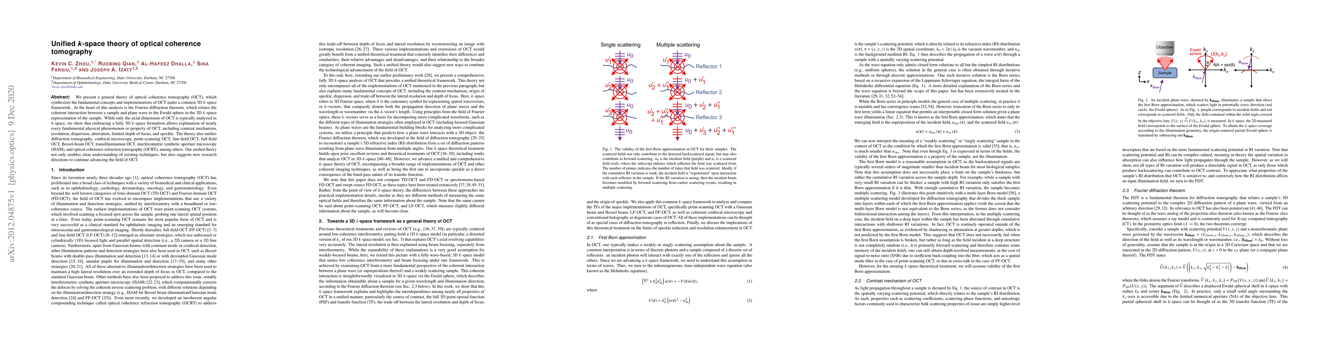 This paper presents a comprehensive 3D k-space theory of optical coherence tomography (OCT) that unifies various OCT implementations under a common framework, explaining fundamental phenomena like contrast, resolution, and aberration. The theory also suggests new research directions for advancing OCT techniques.