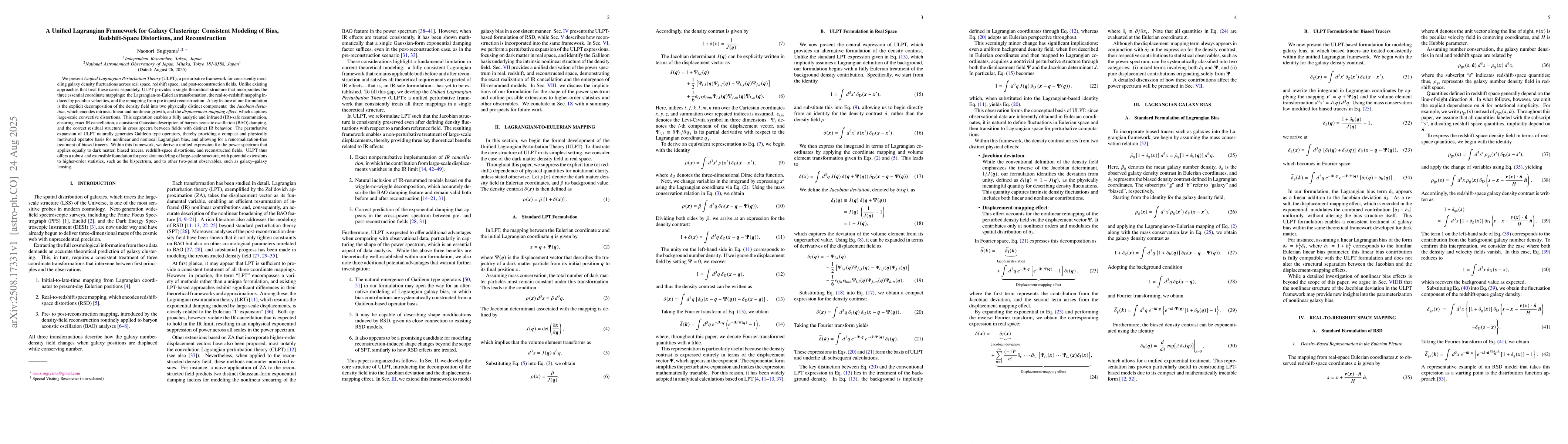 We present \emph{Unified Lagrangian Perturbation Theory} (ULPT), a perturbative framework for consistently modeling galaxy density fluctuations across real space, redshift space, and post-reconstruction fields. Unlike existing approaches that treat these cases separately, ULPT provides a single theoretical structure that incorporates the three essential coordinate mappings: the Lagrangian-to-Eulerian transformation, the real-to-redshift mapping induced by peculiar velocities, and the remapping from pre to post reconstruction. A key feature of our formulation is the explicit decomposition of the density field into two physically distinct components: the \emph{Jacobian deviation}, which encodes intrinsic linear and nonlinear growth, and the \emph{displacement-mapping effect}, which captures large-scale convective distortions. This separation enables a fully analytic and infrared (IR)-safe resummation, ensuring exact IR cancellation, a consistent Gaussian description of baryon acoustic oscillation (BAO) damping, and the correct residual structure in cross spectra between fields with distinct IR behavior. The perturbative expansion of ULPT naturally generates Galileon-type operators, thereby providing a compact and physically motivated operator basis for nonlinear and nonlocal Lagrangian bias, and allowing for a renormalization-free treatment of biased tracers. Within this framework, we derive a unified expression for the power spectrum that applies equally to dark matter, biased tracers, redshift-space distortions, and reconstructed fields. ULPT thus offers a robust and extensible foundation for precision modeling of large-scale structure, with potential extensions to higher-order statistics, such as the bispectrum, and to other two-point observables, such as galaxy--galaxy lensing.