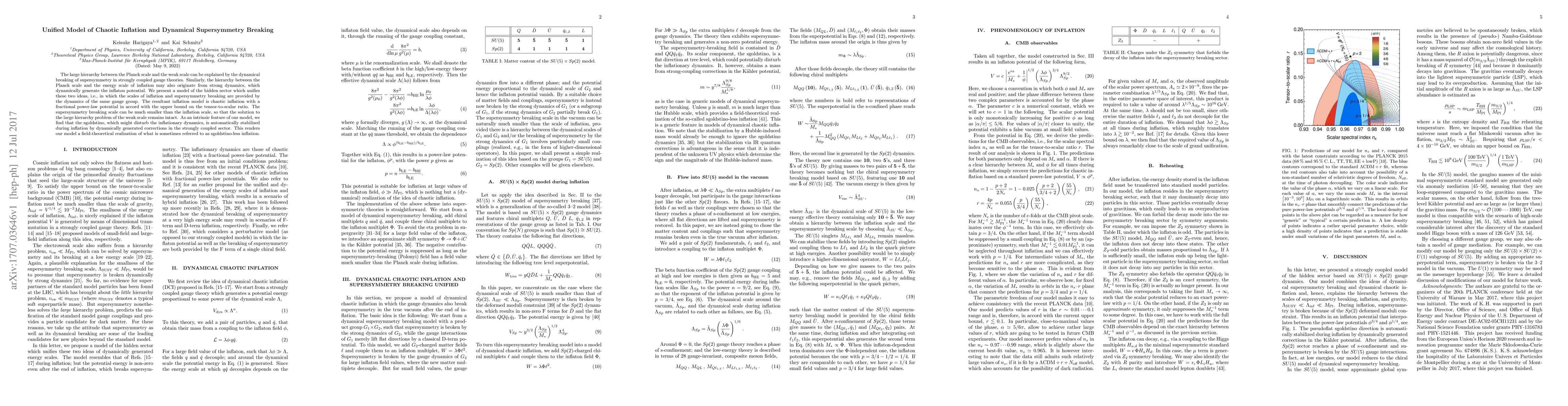 This paper proposes a unified model where chaotic inflation and dynamical supersymmetry breaking arise from the same gauge dynamics, addressing the hierarchy problem and stabilizing the sgoldstino, thus achieving sgoldstino-less inflation. The model features a fractional power-law potential for inflation consistent with observational constraints.