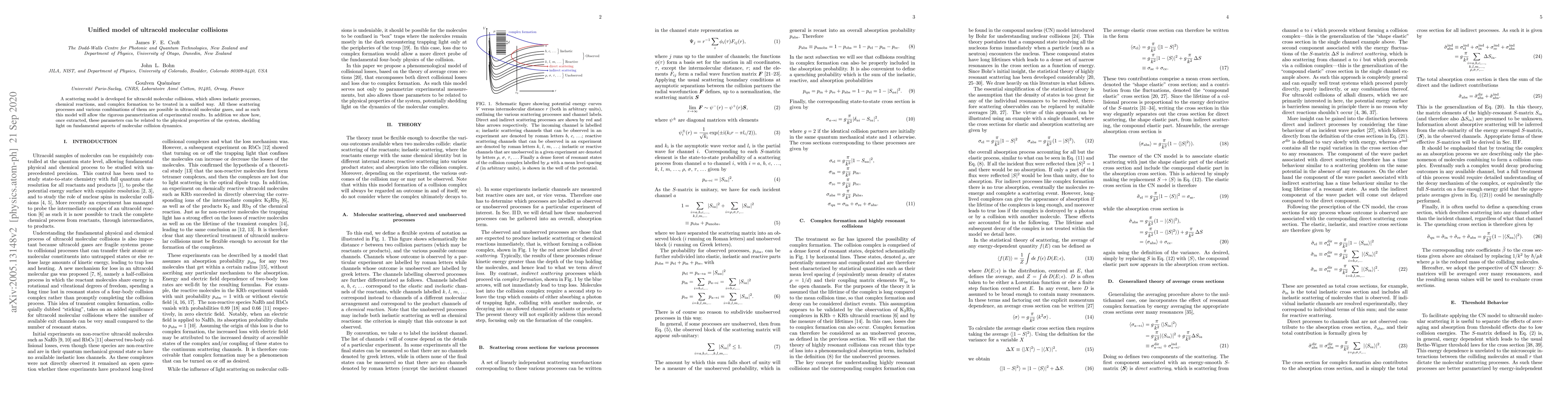 This paper presents a unified scattering model for ultracold molecular collisions, enabling the treatment of inelastic processes, chemical reactions, and complex formation. The model facilitates rigorous parametrization of experimental results and links extracted parameters to fundamental molecular collision dynamics.