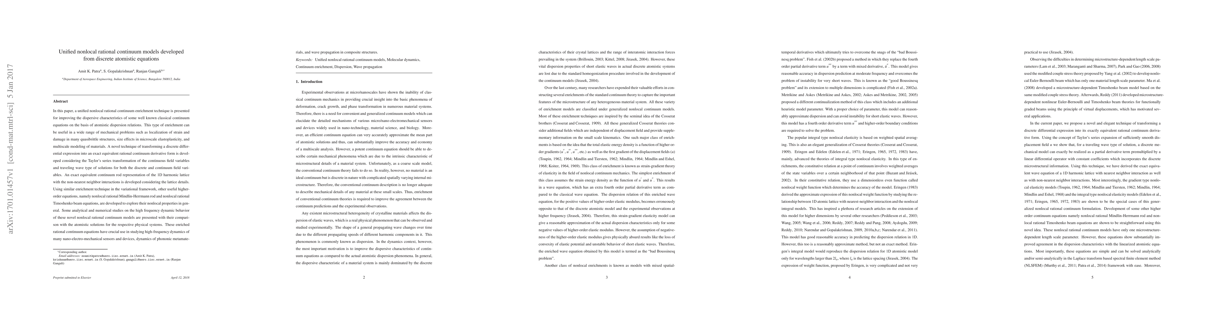 This paper introduces a unified nonlocal rational continuum model to enhance the dispersive characteristics of classical continuum equations using atomistic dispersion relations. The developed technique enriches classical equations for applications in strain localization, microscale elastoplasticity, and multiscale material modeling, and provides exact continuum representations for lattice structures and higher-order beam equations.