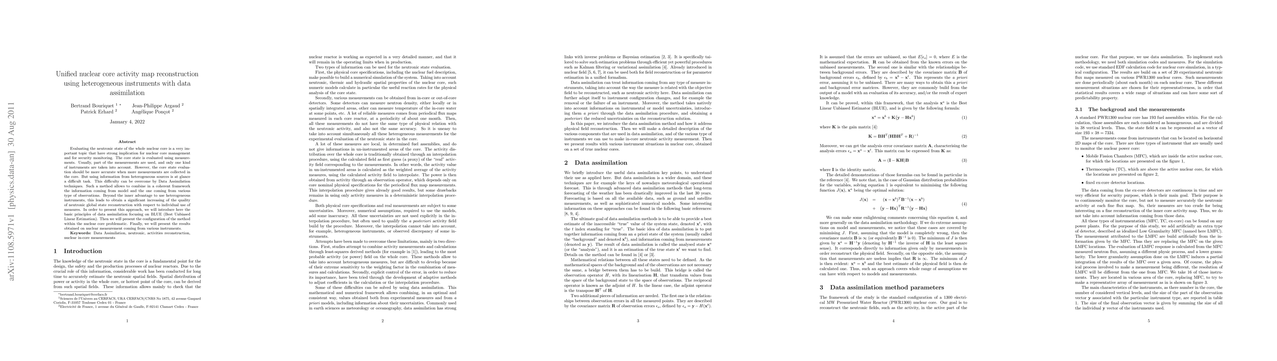 This paper proposes using data assimilation to improve the accuracy of nuclear core state evaluation by combining measurements from various heterogeneous instruments. It aims to increase the quality of neutronic global state reconstruction.