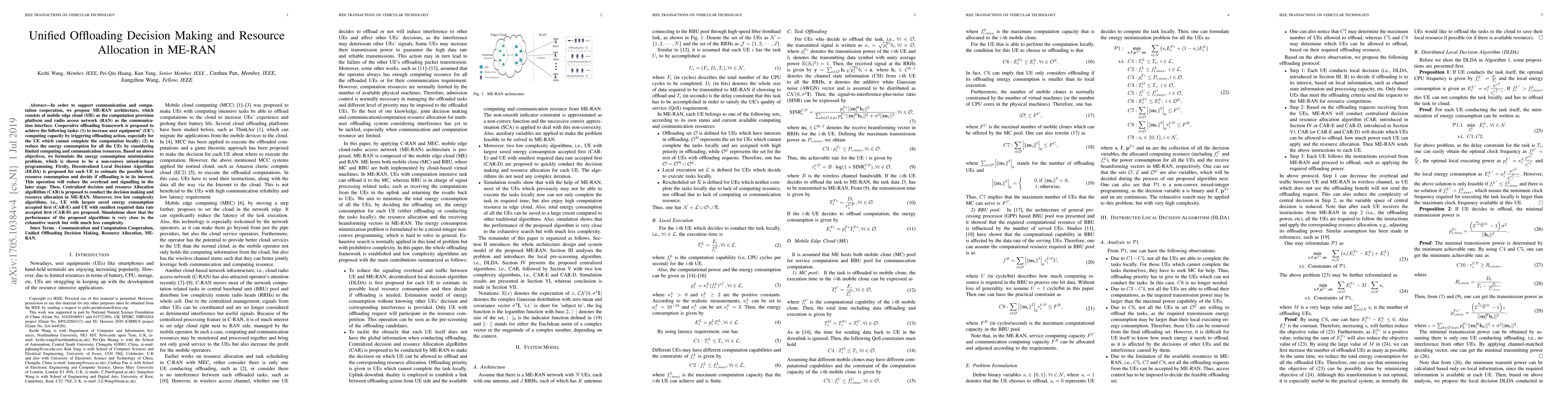 This paper proposes a ME-RAN architecture for communication and computation cooperation, introducing a decentralized offloading decision algorithm and centralized resource allocation to enhance UE computing capacity and reduce energy consumption. Simulation results demonstrate the effectiveness of the proposed algorithms with lower complexity compared to exhaustive search.