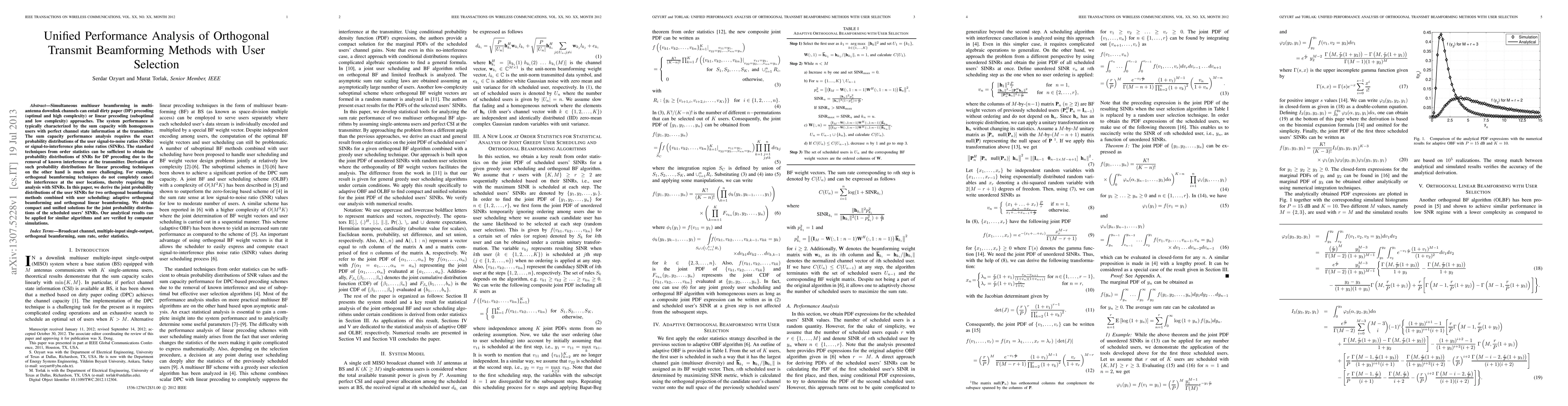This paper derives joint probability distributions of user signal-to-interference plus noise ratios (SINRs) for two orthogonal beamforming methods with user selection: adaptive orthogonal beamforming and orthogonal linear beamforming. The results provide unified solutions and are verified through computer simulations.