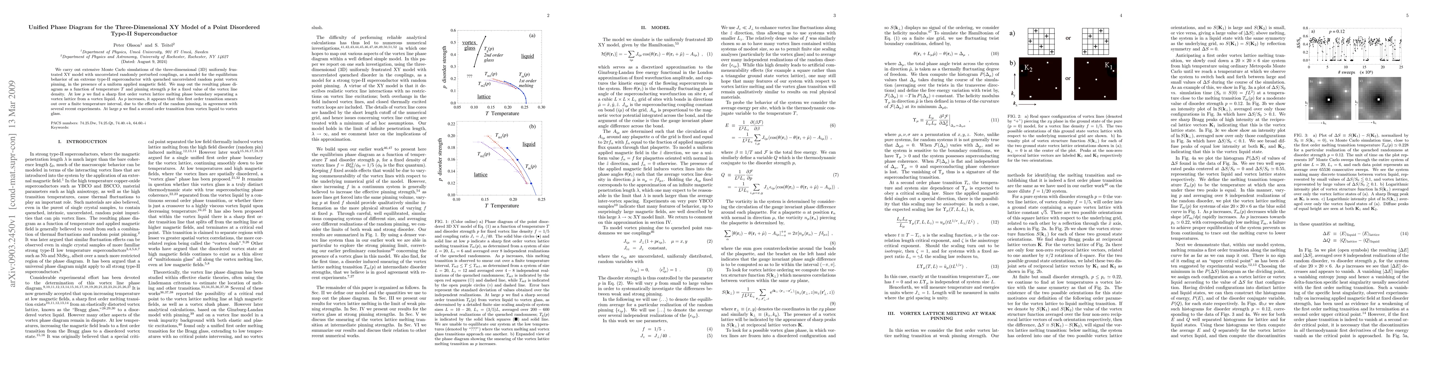 We carry out extensive Monte Carlo simulations of the three-dimensional (3D) uniformly frustrated XY model with uncorrelated randomly perturbed couplings, as a model for the equilibrium behavior of an extreme type-II superconductor with quenched uncorrelated random point vortex pinning, in the presence of a uniform applied magnetic field. We map out the resulting phase diagram as a function of temperature T and pinning strength p for a fixed value of the vortex line density. At low p we find a sharp first order vortex lattice melting phase boundary separating a vortex lattice from a vortex liquid. As p increases, it appears that this first order transition smears out over a finite temperature interval, due to the effects of the random pinning, in agreement with several recent experiments. At large p we find a second order transition from vortex liquid to vortex glass.