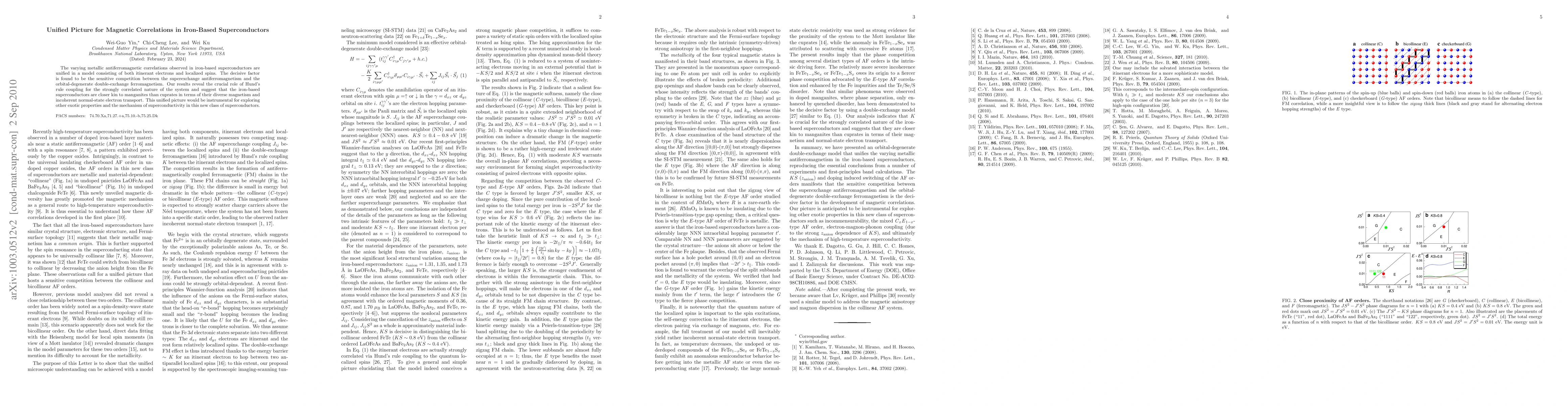 The varying metallic antiferromagnetic correlations observed in iron-based superconductors are unified in a model consisting of both itinerant electrons and localized spins. The decisive factor is found to be the sensitive competition between the superexchange antiferromagnetism and the orbital-degenerate double-exchange ferromagnetism. Our results reveal the crucial role of Hund's rule coupling for the strongly correlated nature of the system and suggest that the iron-based superconductors are closer kin to manganites than cuprates in terms of their diverse magnetism and incoherent normal-state electron transport. This unified picture would be instrumental for exploring other exotic properties and the mechanism of superconductivity in this new class of superconductors.