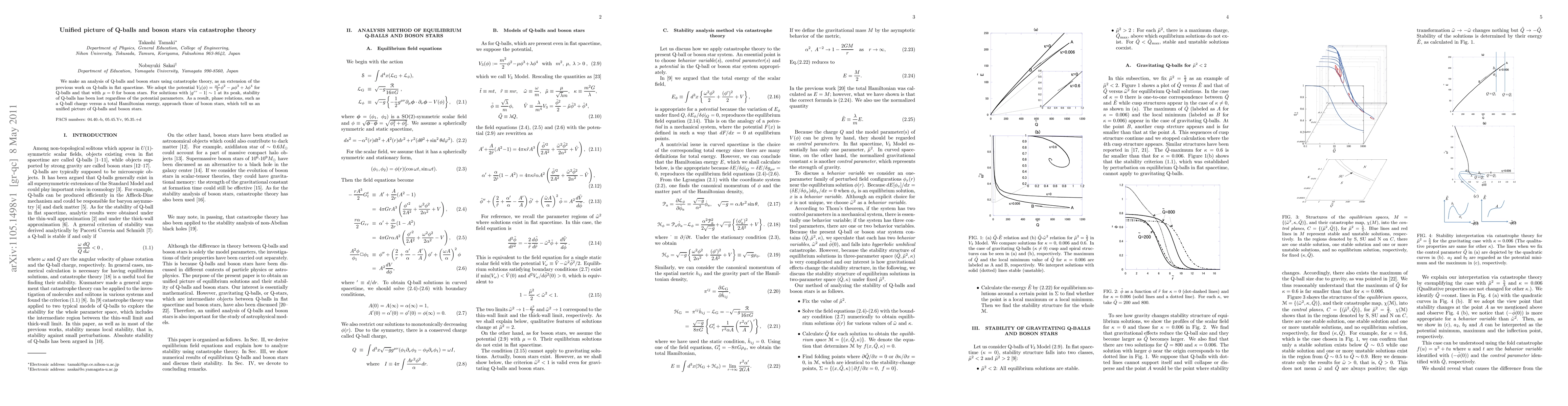 This paper uses catastrophe theory to analyze Q-balls and boson stars, revealing that when the metric component $|g^{rr}-1|$ approaches 1, Q-balls lose stability and their phase relations converge to those of boson stars, thus providing a unified perspective on both phenomena.