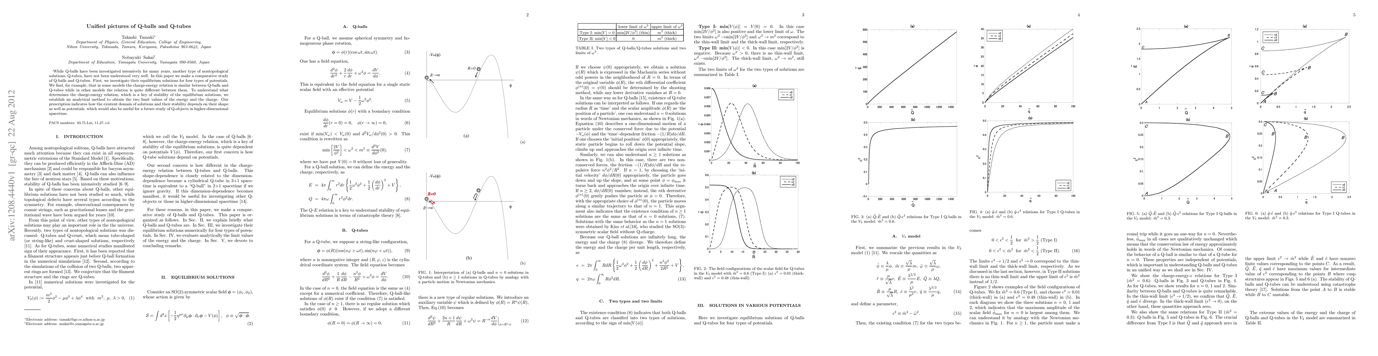 While Q-balls have been investigated intensively for many years, another type of nontopological solutions, Q-tubes, have not been understood very well. In this paper we make a comparative study of Q-balls and Q-tubes. First, we investigate their equilibrium solutions for four types of potentials. We find, for example, that in some models the charge-energy relation is similar between Q-balls and Q-tubes while in other models the relation is quite different between them. To understand what determines the charge-energy relation, which is a key of stability of the equilibrium solutions, we establish an analytical method to obtain the two limit values of the energy and the charge. Our prescription indicates how the existent domain of solutions and their stability depends on their shape as well as potentials, which would also be useful for a future study of Q-objects in higher-dimensional spacetime.