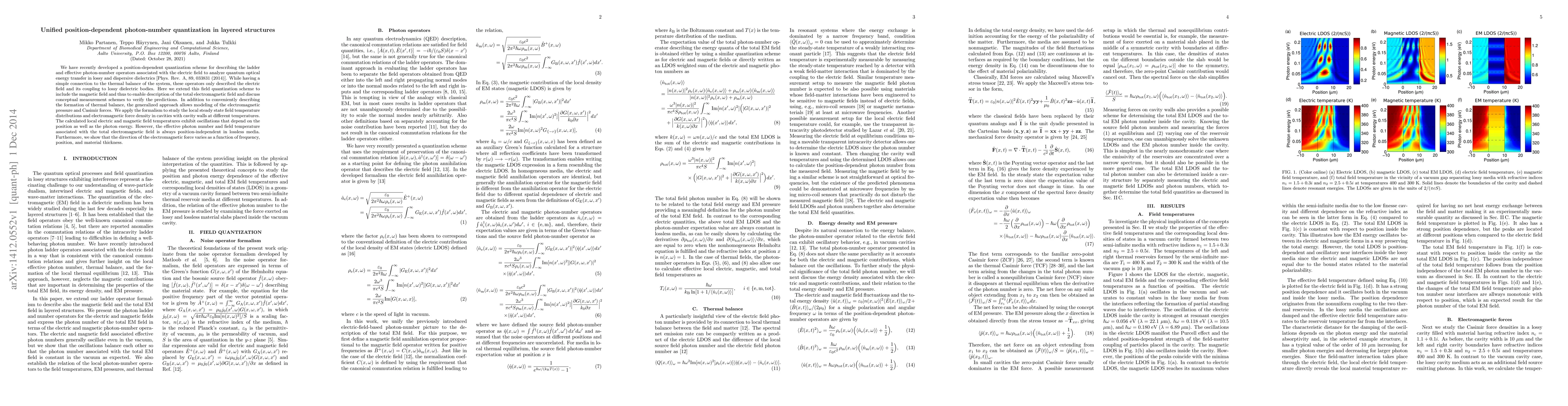 This research extends a photon-number quantization scheme to include magnetic fields, enabling a comprehensive description of electromagnetic fields in layered structures. It discusses measurement schemes for the extended model and applies it to study temperature distributions and forces in cavities with varying wall temperatures, revealing position-dependent field temperatures and frequency-dependent electromagnetic force directions.